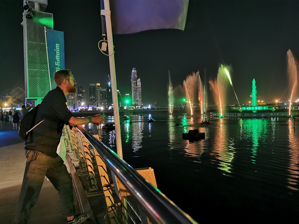 In vielerlei Hinsicht erlebten wir Dubai so wie man es sich vorstellt: Wir sahen ein gigantisches Aquarium, ein Eishockeystadion, Wasserfälle und eine Skihalle in diversen Malls, betraten eine künstliche Insel in Form einer Palme und bewunderten die spektakulär orchestrierten Fontänen Shows vor dem Burj Kalifa und der Festival Mall. Wir sahen teure Autos auf endlosen Kilometern frischen Asphalts (oder in Downtown sogar teilweise auf Granit) herum rollen, da die Stadt wie kaum eine andere Metropole in Asien fast ausschließlich auf den motorisierten Individualverkehr ausgelegt ist. Der guten Ordnung wegen, durften wir unsere Fahrräder regelmäßig nicht auf dem Gehweg, vor Luxushotels oder in Fußgängerzonen abstellen, worauf uns die an jeder Ecke wachsam umherstreifenden Sicherheitskräfte (Angestellte der Malls und Hotels, nicht die Polizei) höflich hinwiesen.