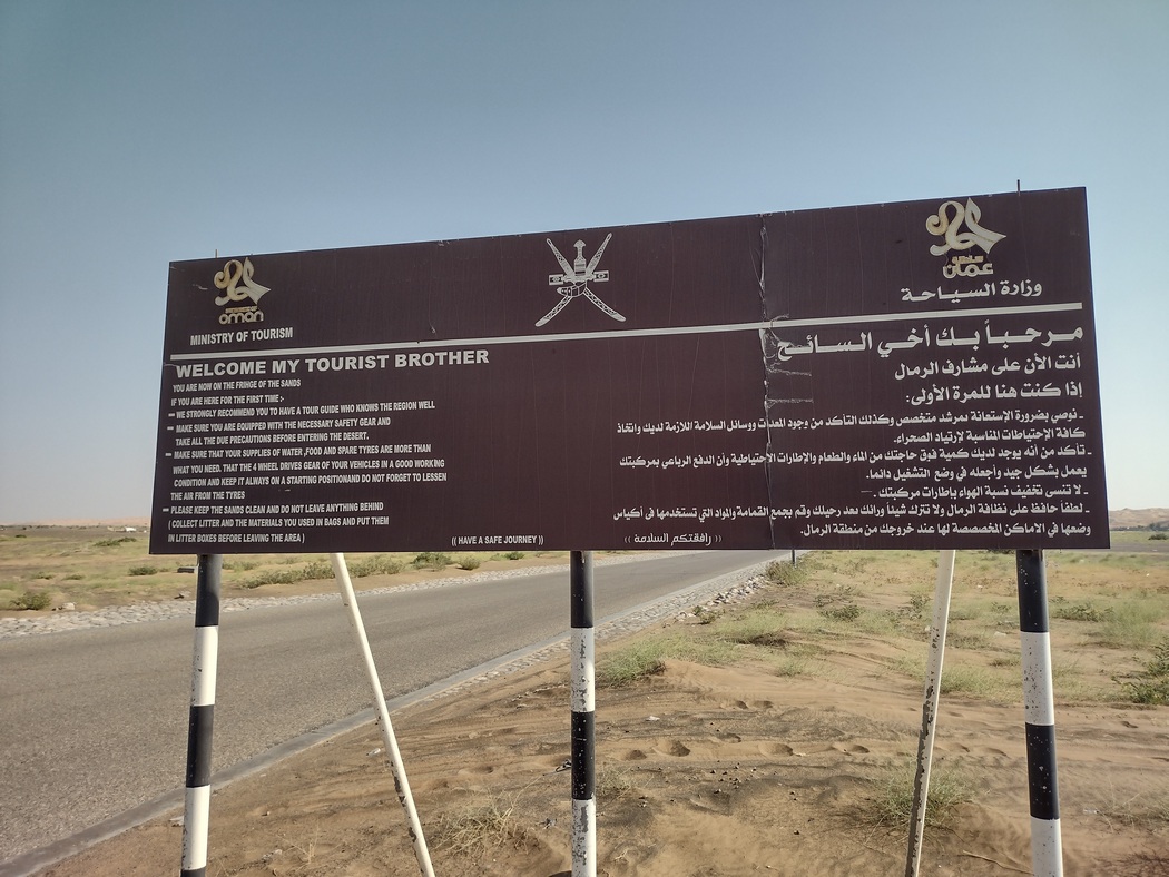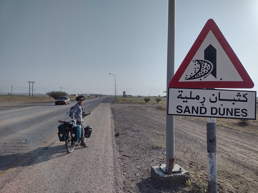 Die anfängliche Begeisterung über das wohl schönste Land auf der arabischen Halbinsel wurde deshalb etwas eingetrübt. Zunächst wollten einen kurzen Abstecher machen, um zumindest das nördliche Ende der Rimal al Wahiba Sandwüste zu sehen, die in etwa die selben Ausmaße wie das österreichisch Bundesland Tirol hat. (Nein, der Name hat nichts mit Julias Heimatort Waldhilsbach zu tun, der liebkosend gerne Wahiba genannt wird. Ansonsten waren die Ähnlichkeiten aber frappierend.) Das Angebot eines Fremdenführers der uns umständlich zu sich herübergewinkt hatte uns für 20 Rial mit dem Jeep in die Dünen zu fahren, um dort eine Nacht zu bleiben schlugen wir jedoch aus, da wir ja schließlich mit dem Fahrrad unterwegs waren und bleiben wollten.