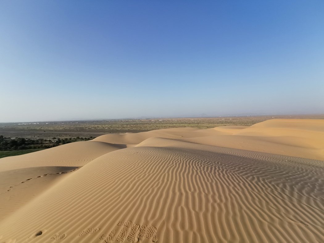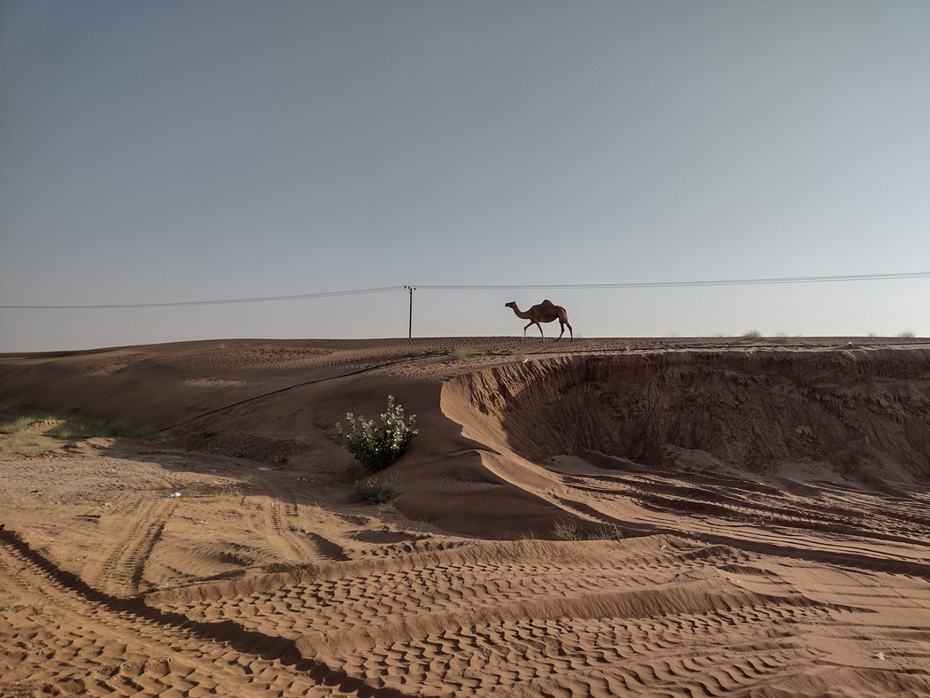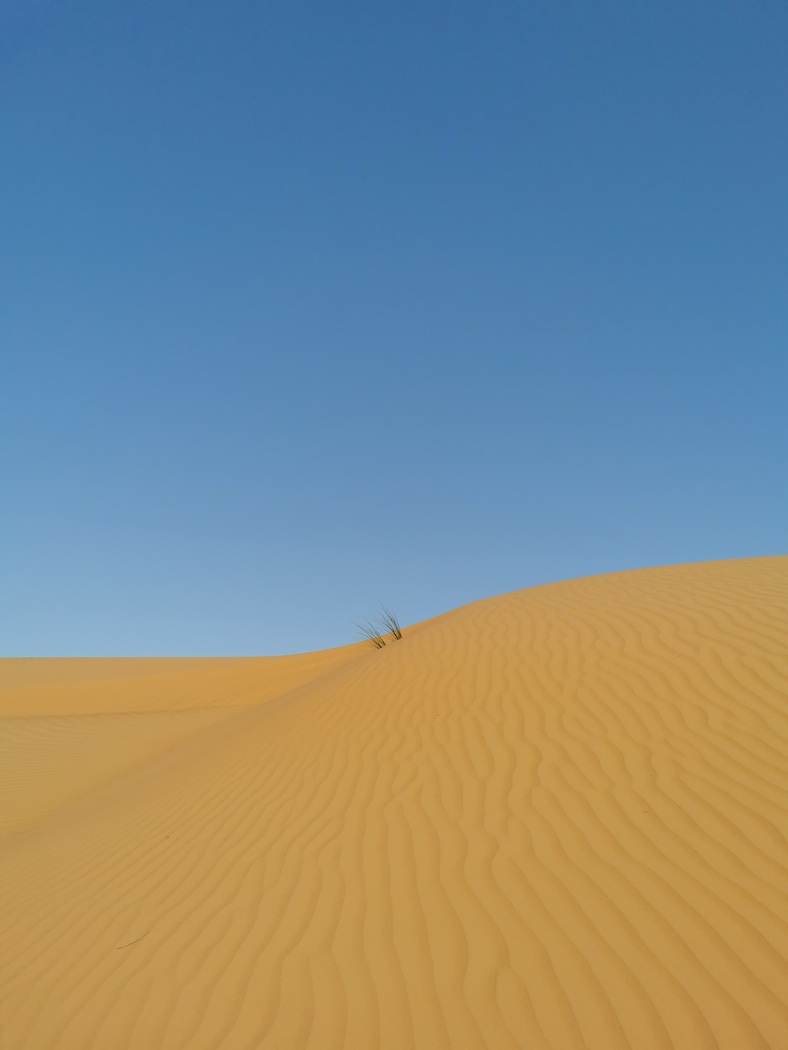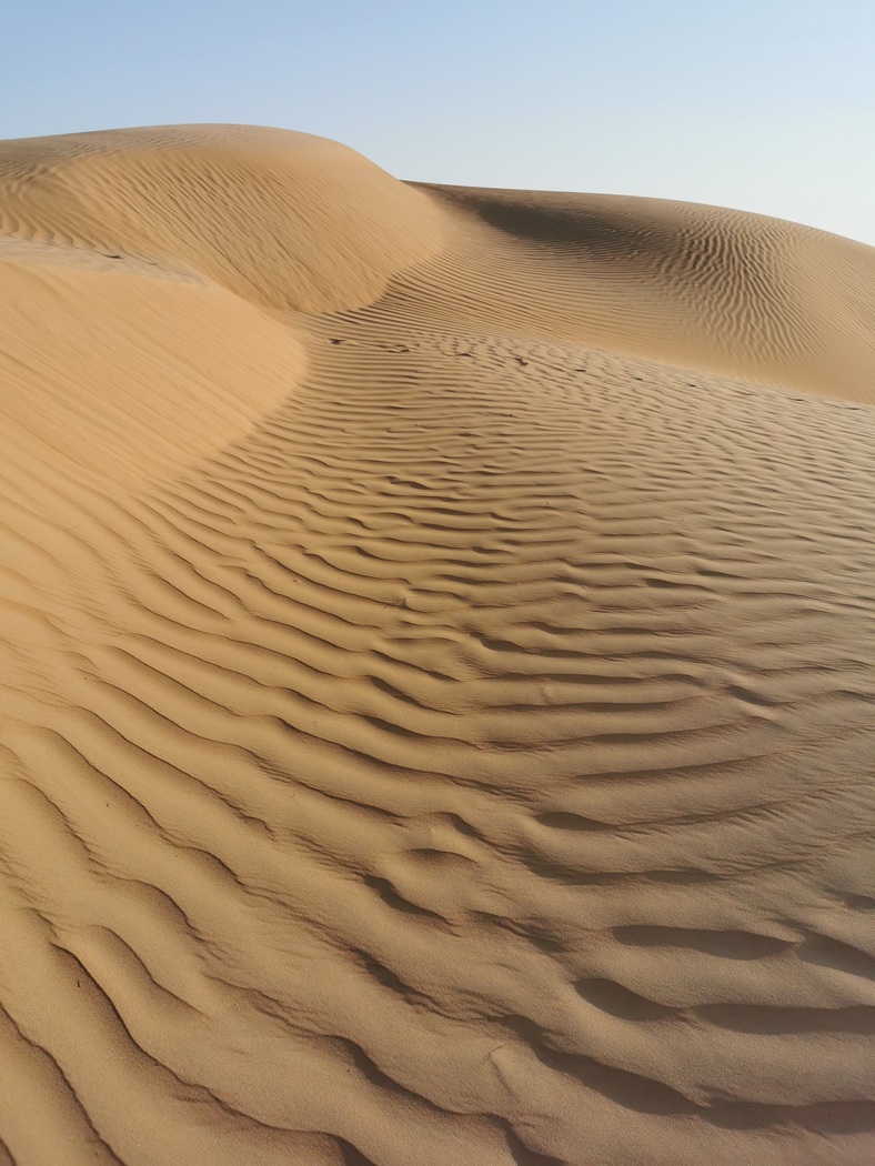 Die Sanddünen waren auch sehr beeindruckend, nur wollte sich an deren Rändern leider kein wirklich schöner Zeltplatz finden lassen. Wir hatten eigens das kleine Nest Al Hawiyah angefahren, das rundherum von Dünen umgeben war und somit eine asphaltierte Schneise in die mit Fahrrädern unpassierbare Landschaft geschlagen hatte. Zwischen den einfachen Häusern war allerdings kein gemütliches Fleckchen zu finden und die Einwohner interessierten sich in keinster Weise für uns.