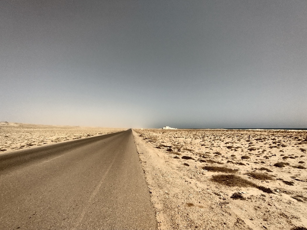Wir hatten daher eine Weile die Möglichkeiten eruiert den Oman auf dem Wasserweg zu verlassen. Die von uns dabei präferierte Möglichkeit wäre ein Schiff nach Kenia gewesen. Dazu hatten wir lange darüber nachgedacht in das im Süden gelegene Salalah zu reisen, das den größten Hafen des Landes beherbergt, der sich immerhin auch in den Top 50 der Welt wiederfindet. Nach langer und zäher Internetrecherche, die sogar die gelegentliche Nutzung eines Schiffsradars beinhaltete (um herauszufinden wir regelmäßig Cargo-Schiffe zwischen Salalah und Mombasa verkehren), waren wir jedoch zu dem Schluss gekommen, dass es ziemlich ausgeschlossen ist auf irgendeinem Schiff vom Süden des Omans an die afrikanische Ostküste zu gelangen. Da die Fahrt nach Salalah einen fast 1.000 km langen Ritt durch die Wüste bedeutete hätte, den wir im Anschluss aller Voraussicht nach unverrichteter Dinge auch wieder hätten zurück fahren müssen, hatten wir uns nach langem hin und her dazu entschieden diesen Trip nicht auf uns zu nehmen. Dem ganzen Thema Entscheidungen und Weiterreise werden wir uns in einem späteren Beitrag noch einmal ausführlich widmen. Da wir nun jedoch davon ausgehen mussten, dass wir es ohne zu fliegen gar nicht mehr nach Afrika schaffen würden, es also gar nicht mehr nach Afrika schaffen würden, sah es nun schwer danach aus, dass wir in Al Askarah wohl den südlichsten Punkt unseres gesamten Trips erreichen würden. Eigentlich wollten wir auch nur nach Al Askarah und nicht in das etwas weiter nördlich gelegene Asilah fahren, da ansonsten der südlichste Punkt der Reise auf eine Straßenkreuzung im Nirgendwo 10 km von der Küste entfernt entfallen wäre.