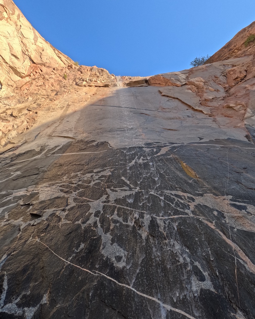 Zufällig entdeckten wir am Nachmittag von Tag 280 einen prächtigen Wasserfall, der zuerst eine ca. 30 Meter hohe Klippe herabstürzte und sich dann zwischen Felsbrocken in Kaskaden den Rest des Berges herunter arbeitete. Fast hätten wir ihn übersehen, doch da ein so seltenes Naturschauspiel auch die einheimische Bevölkerung anzog, fiel uns der rege Verkehr abseits der Straße auf. Wir kletterten also den felsigen Weg hinauf, um ihm ganz nah zu kommen.
