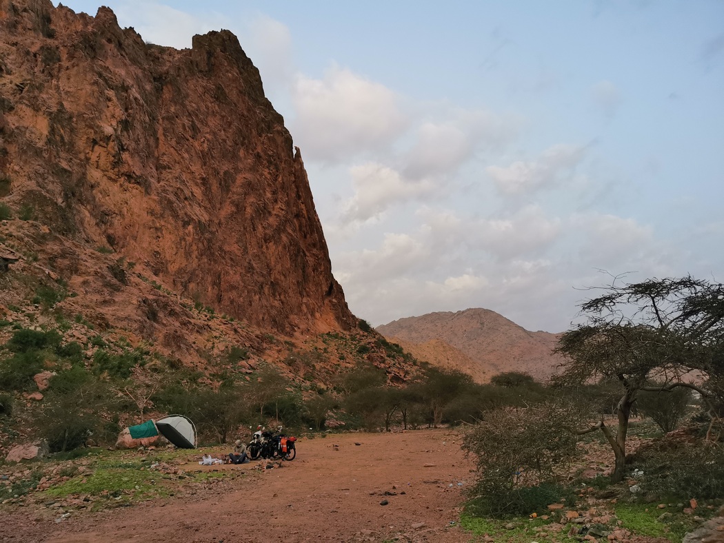 Eigentlich hatten wir uns beeilen wollen, um auf eine Einladung einzugehen, die wir von einem Lexus-Fahrer erhalten hatten. Er bot „free hotel“ in unserem nächsten Ziel Al Ula an. Da wurden unsere Augen natürlich groß. Doch als wir mit ihm über WhatsApp kommunizierten wurde klar, dass wohl doch nur sein Privathaus gemeint war. Trotzdem entschieden wir auf das Angebot einzugehen, obwohl wir uns vorgenommen hatten, keiner Übernachtung mehr zuzustimmen, wenn der Gastgeber nicht gut englisch sprach, da das einfach zu anstrengend ist. Schließlich entpuppte sich die Einladung jedoch nicht nur wegen der Sprachbarriere als überwiegend unangenehm und führte dazu, uns wieder darauf zu besinnen, dass wir für so etwas nicht gemacht sind. Aber davon berichten wir euch ein anderes mal…