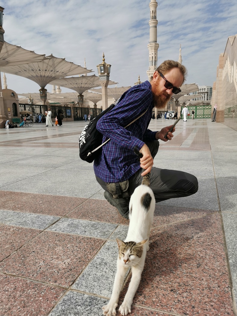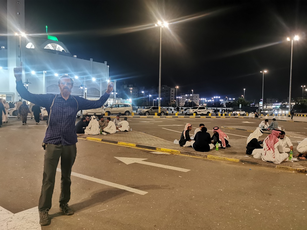 Außer uns wurde dort auch eine Busladung Pilger auf dem Weg nach Medina ausgespuckt. Ein Zentralasiate kam auf uns zu mit einem Geldschein in der Hand und wollte uns diesen überreichen. Wir lehnten dankend ab und er unternahm keinen zweiten Versuch. Offenbar hatte er es nicht allzu ernst gemeint. Auch in Riyadh hatte uns bereits jemand gefragt, ob wir Geld bräuchten, was wir etwas lustig und skurril fanden. An die ganzen Geschenke und Einladungen haben wir uns bereits gewöhnt, doch dass uns nun auch Geld angeboten wurde, dass, fanden wir, ging dann doch ein wenig zu weit.