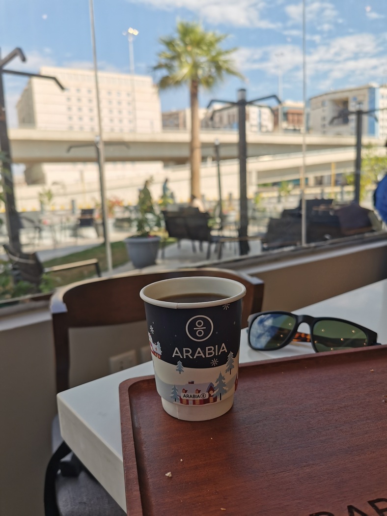 Lange im Hotel wollten wir uns jedenfalls nicht aufhalten und beschlossen am nächsten Morgen noch eine Weile in einem der modernen Cafés am neuen Boulevard abzuhängen. Denn obwohl jeder Saudi voller Stolz den arabischen Kaffee serviert, findet man in diesem Land zahlreiche Café-Ketten nach westlichem Vorbild. Gut für uns, die wir gerne Americano trinken. Porzelantassen sind hier allerdings nicht verfügbar, Kaffee wird im Pappbecher gereicht. Mehrweg kennt der Saudi selbst im eigenen Haushalt regelmäßig nicht.