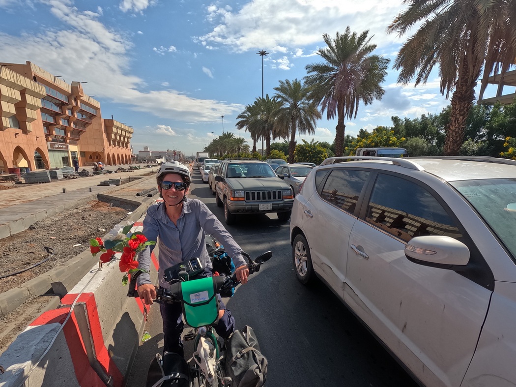 Fast hätte das Fahrradfahren wieder uneingeschränkt Spaß gemacht, denn die Freude daran hatten wir auf dem Weg von Abu Dhabi bis Jeddah etwas vergessen, wäre da nicht der Gegenwind gewesen, der unsere Beine ermüdet und einfach nur nervte. Trotzdem war die Fahrt nach Medina ein Genuss und erst kurz vor der Stadt begann der Verkehr etwas anstrengend zu werden.