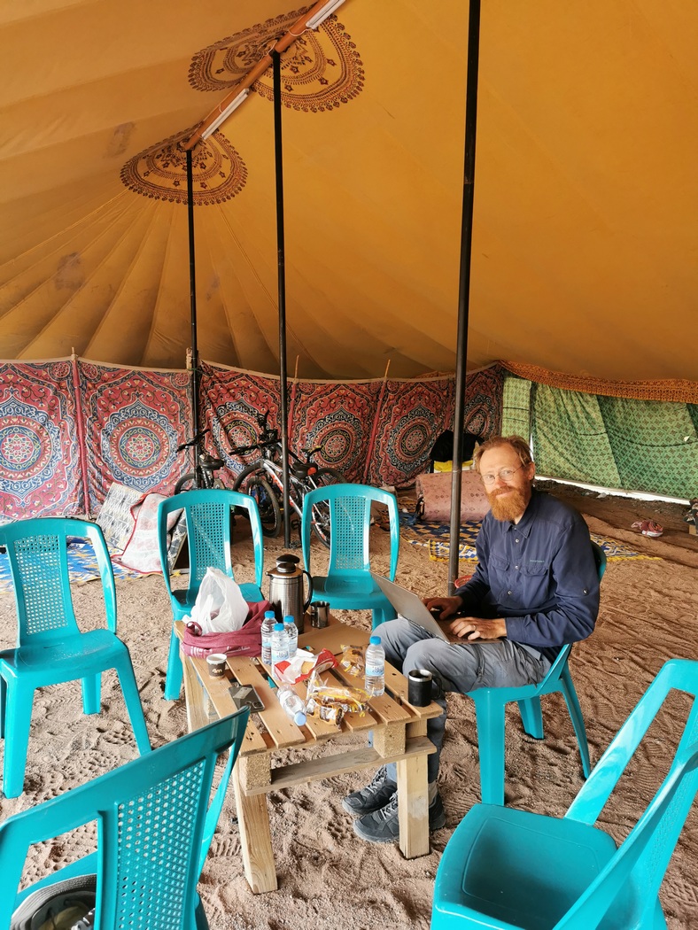 Die Moschee bot Schutz vor dem lästigen Wind, der nicht nur auf dem Fahrrad störte, sondern auch abends unsere ganzen Sachen verwirbelte. Tilmann ist außerdem ein großer Fan davon, verlassene Infrastruktur zu nutzen.