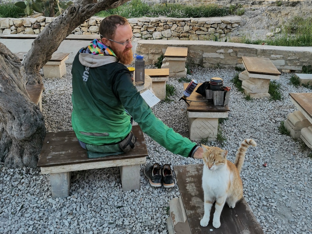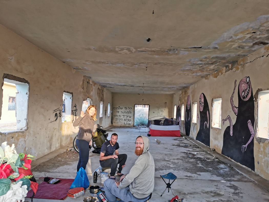 Mittlerweile hatten wir dann doch das dringende Bedürfnisse nach 7 Tagen und vielen schweißtreibenden Höhenmetern einmal wieder richtig zu duschen und brachen auf zu unserem Host auf, den uns das portugiesisch-brasilianische Traveller-Pärchen, das wir in Eilat kennengelernt hatten, vermittelt hatte. Wir wussten deshalb schon, dass die Location einmalig sei, der Aufenthalt dort allerdings auch etwas seltsam. Und so kam es dann auch.