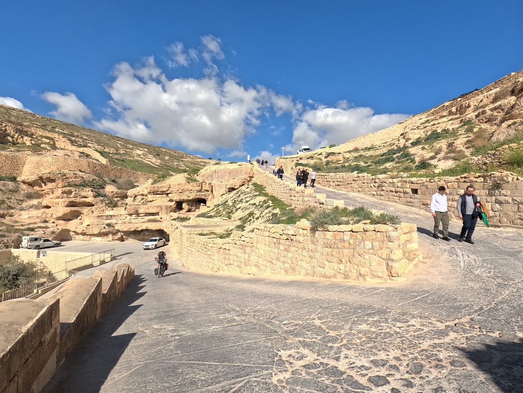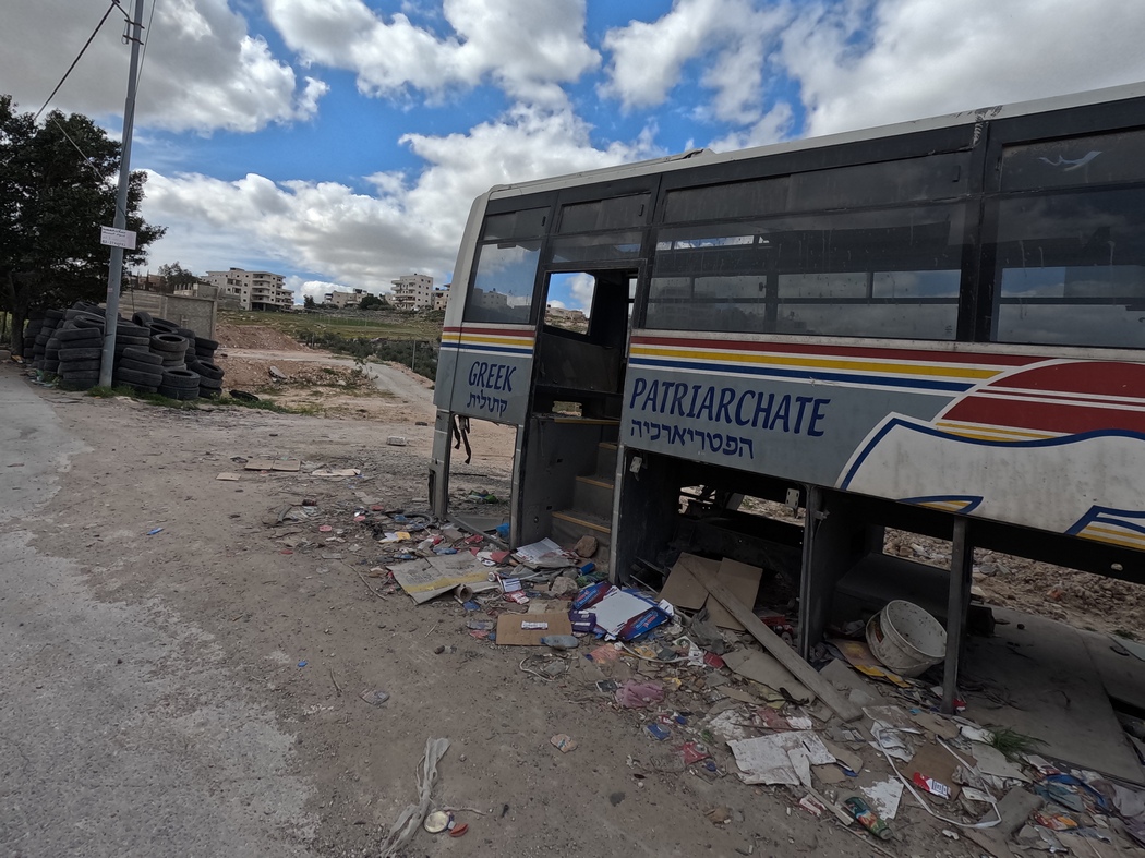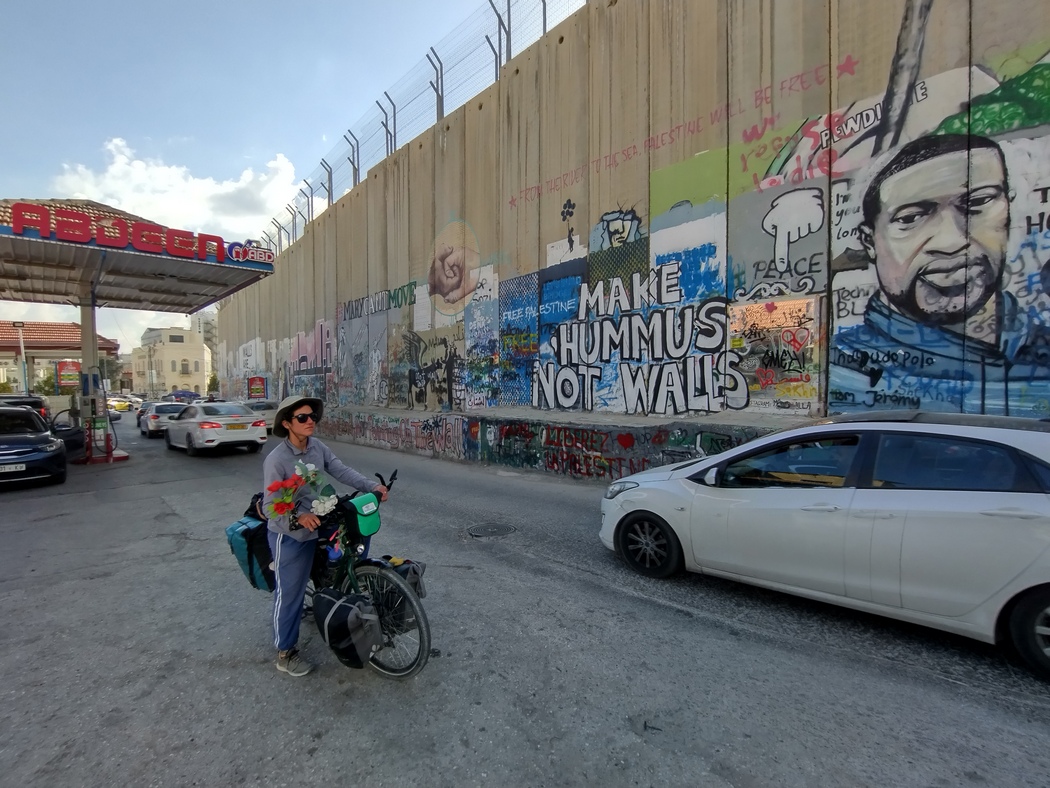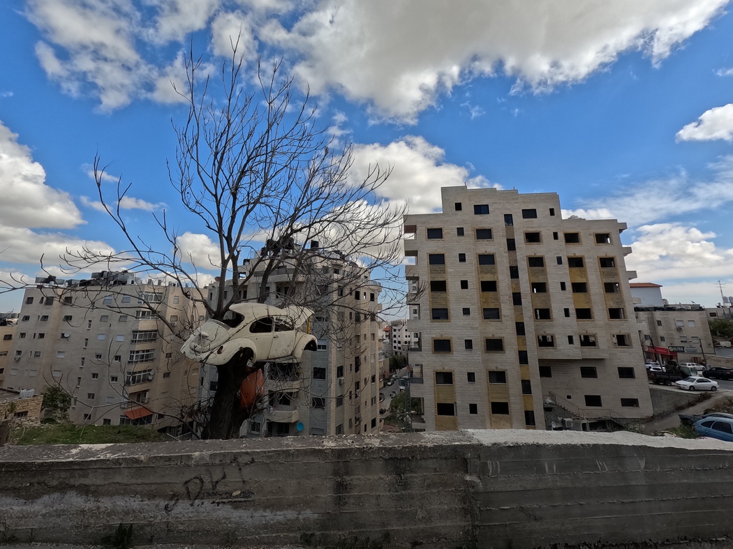 Am 13.03.2023 verließen wir Jerusalem und beschlossen, trotz verschiedenartiger Meinungen über die dortige Sicherheitslage und entsprechende Verhaltensweisen, durch die Westbank zu fahren. Viele Israelis fahren selbst nie in die Westbank und scheinen teilweise große Bedenken zu haben. Wenn man die Grenze von Israel zu den palästinensischen Gebieten überquert, wird man allerdings nicht kontrolliert, andersherum schon. Es ist also durchaus möglich, als Israeli in die Westbank zu fahren, allerdings wiesen auch einige Schilder darauf hin, dass es nicht erlaubt ist. Da es ein paar Tage zuvor wieder einen Anschlag in Tel Aviv gegeben hatte, wurden wir gewarnt, die Situation könnte angespannt sein. Wir verließen Jerusalem und konnten noch einmal die brachiale spaltende Mauer sehen, an der wir eine Weile entlang fuhren, bis wir sie schließlich unbehelligt durchquerten und uns an Massen von sich staunenden Autos vorbei durch das bergige Gelände arbeiteten. Wir hatten beschlossen, die Städte nun größtenteils zu umfahren, weil der Verkehr schon fast wieder iranisches Niveau erreicht hatte.