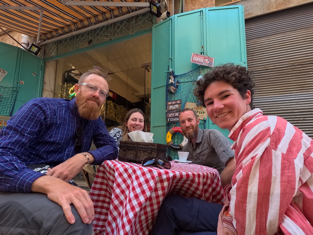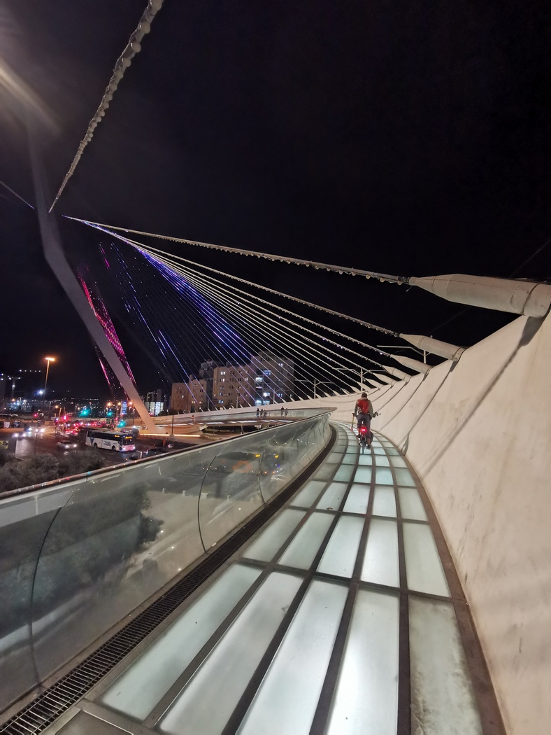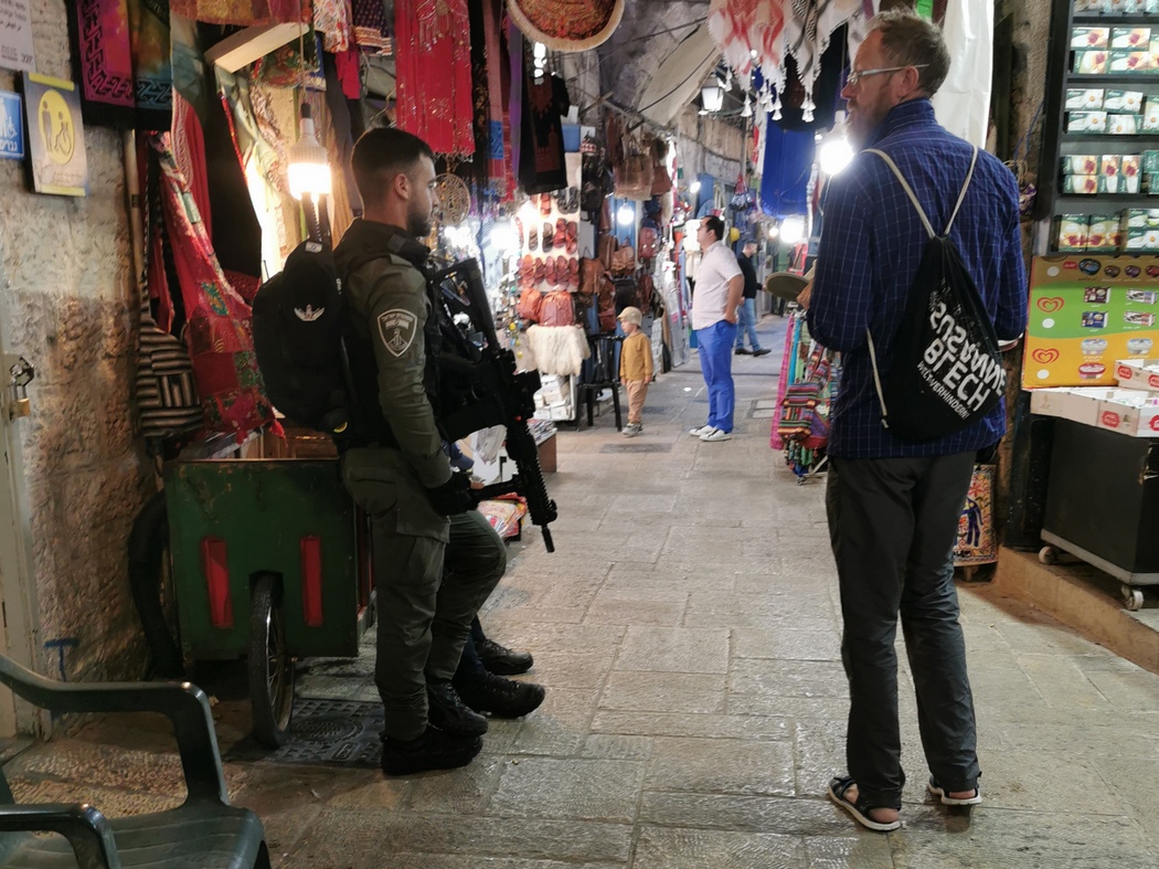 Die dritte Nacht in Jerusalem verbrachten wir schließlich bei einer Familie, die zwar nicht in der Altstadt, aber nicht allzu weit entfernt lebte. Auch diesen Kontakt hatten wir über einige Ecken bekommen, wobei sich die initiale Begegnung auf einem Fahr-Job in Midreshet Ben Gurion ereignet hatte. Esther, ihr Mann und ihre drei Kinder empfingen uns mit offenen Armen, was den zwischenmenschlich etwas seltsamen Kontakt mit unserem Gastgeber aus der Altstadt wieder aufwog. Wir wurden reichlich mit leckerem Essen umsorgt und unterhielten uns mit den beiden bis spät Abends über Fahrradfahren, Reisen, Deutschland und Israel. Da wir uns auch ausführlich über den Militärdienst und die Sicherheitslage in der Westbank unterhielten, kamen wir auch darauf zu sprechen, dass man in Israel täglich mehrfach Waffen zu Gesicht bekommt. Die Dichte an Soldaten ist sehr hoch, sie tragen ständig ihre Waffen mit sich, aber darüber hinaus tragen auch viele Israelis privat eine Waffe. Während in Deutschland die meisten Menschen aus unserer Bubble – und dazu würden wir die beiden ansonsten auch zählen – dies ablehnen würden, befürworteten die beiden diesen Umstand. Esther erzählte sogar, dass sie froh war, als ein Bekannter von ihr bei einem Picknick mit den Familien seine Waffe dabei hatte, da auch zwei arabische Männer den Picknick-Platz genutzt hatten. Esther war auch etwas skeptisch, ob wir sicher wären, wenn wir durch die Westbank radelten, doch ihr Mann schlug sich auf unsere Seite und erklärte seiner Frau augenzwinkernd „They want their Westbank-Expierence“.