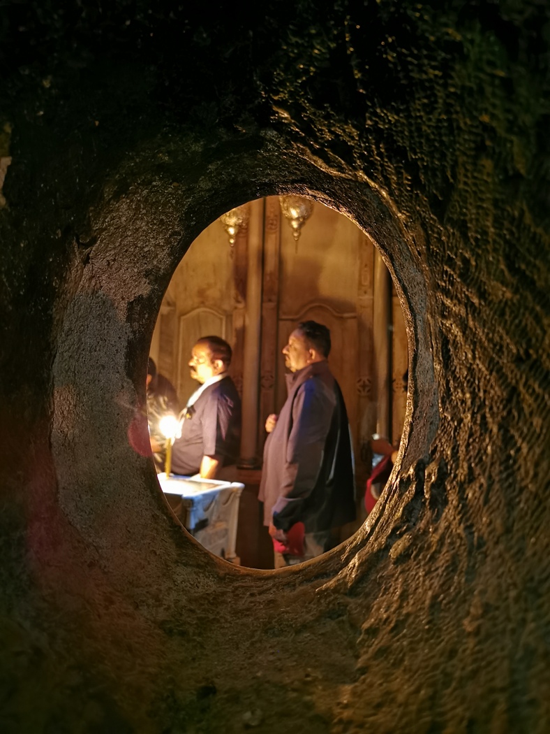 Auch die Kinder mit ihren Tee und Kaffee angeboten, ließen uns nicht aus den Augen. Der Tür-Mönch versuchte sie einige Male zu vertreiben, doch dann kletterten sie nur schnell eine Balustrade hoch und kaum schaute er weg, schlichen sie sich aus einer anderen Richtung wieder in den Kessel, an dessen Boden sich der Klostergarten befand. Wir fühlten uns aufgrund dieser speziellen topografischen Lage, wie in einem Amphie-Theater, während wir unten saßen und von allen Rängen aus beobachtet wurden. Die Mönche waren von der Anwesenheit dieser Menschen auf ihrem Grund und Boden offensichtlich nicht begeistert, konnten sich aber auch nicht wehren. Der rumänische Gastbruder verglich das illegale Siedeln der arabisch stämmigen Sicherheits- und Gastronomiekräfte auf rechtmäßig erworbenen Grund und Boden des Klosters mit den Zigeunern (Zitat) in Rumänien.