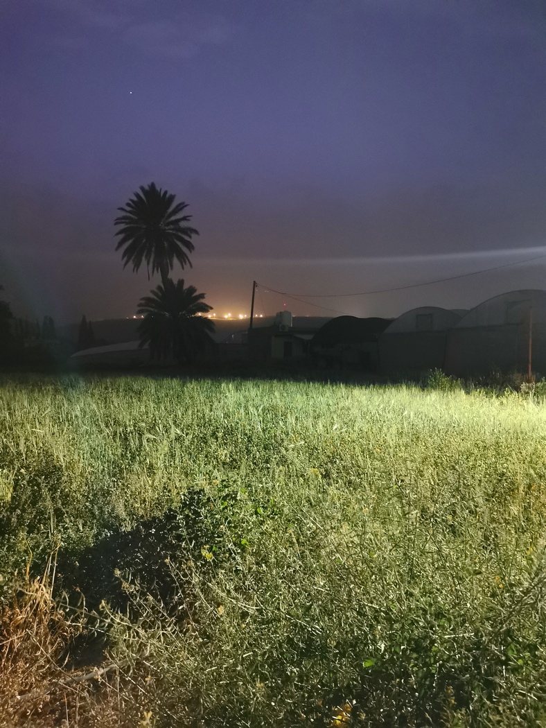 Wir beschlossen, das Dorf für unsere Pause wieder zu verlassen und ließen uns etwas entfernt an einer Kreuzung im Gras nieder. Die Vorbeifahrenden grüßten uns alle sehr freundlich, allerdings nahmen wir insgesamt mehr Zurückhaltung war als in anderen arabischen Ländern. Gestärkt brachen wir wieder auf uns begannen bereits früh nach einem Schlafplatz Ausschau zu halten. Wir wollten etwas finden, das uns Schutz vor dem bevorstehenden Regen bieten könnte. Neben den palästinensischen Dörfern kamen wir ebenfalls an einigen jüdischen Siedlungen vorbei, die wie allseits bekannt in dieser Gegend umstritten sind. Entsprechend handelt sich um wirkliche Hochsicherheits-Dörfer, mit hohen verstachelten Zäunen, die nachts komplett ausgeleuchtet sind und von Soldaten von einem Turm aus überwacht werden. Sehr einladend wirkt dies natürlich nicht und wir bevorzugten eine leere Scheune zu finden.
