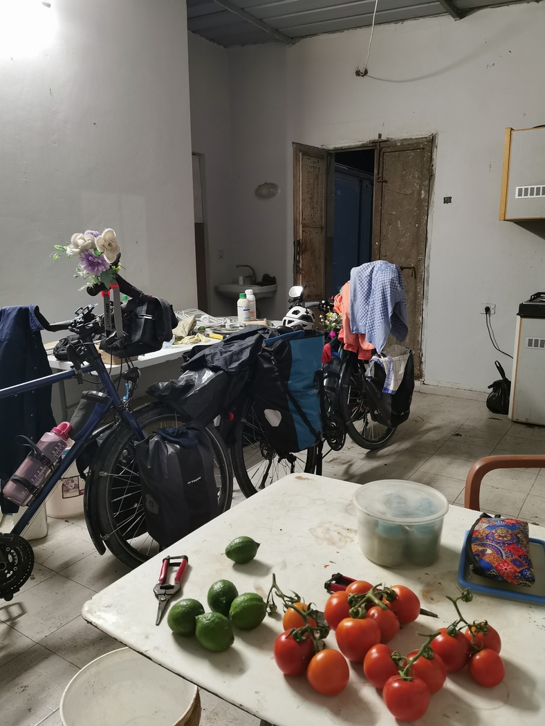 Mit dem jungen Chef unterhielten wir uns recht angeregt. Es stellte sich heraus, dass er Maschinenbau studiert hatte, aber nun lieber die Tomaten-Plantage managede und damit wohl auch gutes Geld verdiente. Schließlich lud er uns ein, dass wir auch die Nacht in dem Farmhaus verbringen könnten, er selbst und seine Arbeiter würden bald nachhause fahren. Die Hütte war zwar sehr dreckig, verfügte aber über Dusche, Küche und durchgelegene Pritschen und bot somit einen nahezu perfekten Ort, um die Regennacht zu verbringen. Und es sollte heftig regnen. Mit dem Farmer Saad unterhielten wir uns noch eine Weile, bevor er aufbrach und lachten viel, bis er plötzlich verkündete, dass er ein großer Hitler-Fan sei und uns auf unsere Nachfrage hin, klipp und klar sagte, dass er ihn verehre, weil er 6 Millionen Juden „verbrannt“ hat.