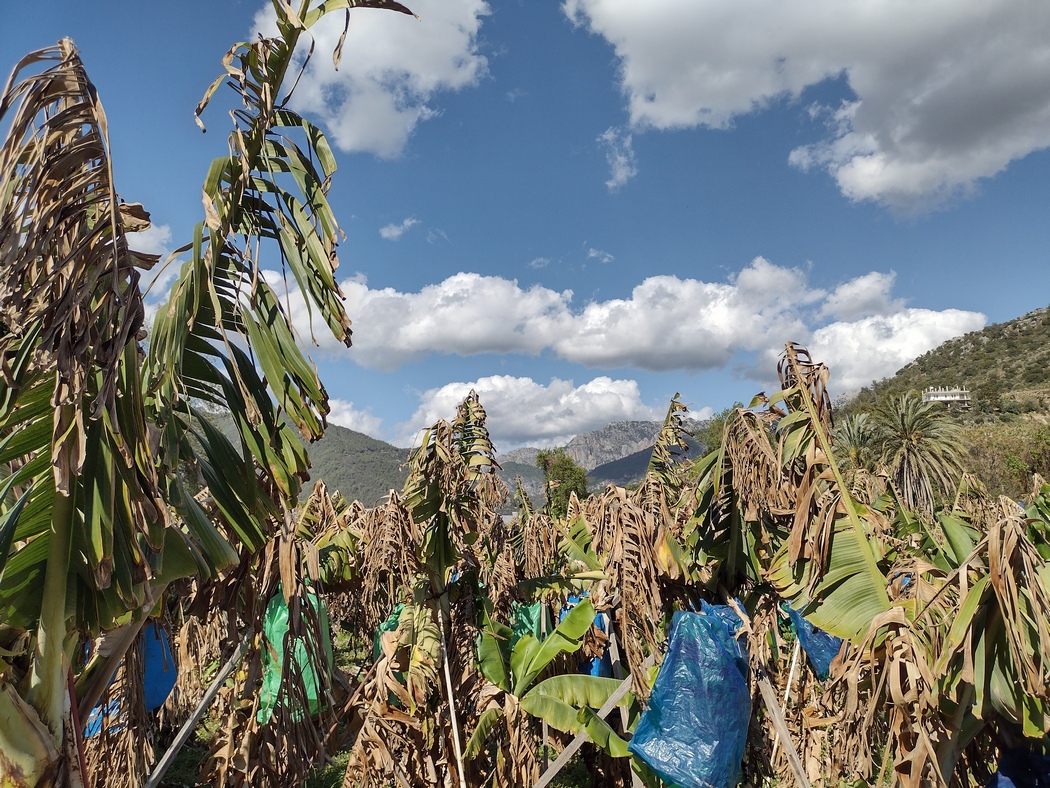 Ja, die Küstenregion zwischen Tasucu bis kurz vor Alanya ist wunderschön. Natürlich finden sich hier auch Hotels, aber nur in geringer Anzahl. Wenn hier etwas das Landschaftsbild trügt sind es vor allem Gewächshäuser und nicht Hotelburgen. In diesen wachsen, wie schon in Israel und erneut zu unserer Überraschung, überwiegend Bananen. Die etwas älteren Modelle der Gewächshäuser waren noch komplett aus Glas und hatten doch einen gewissen Charme, die neueren Modelle aus Plastik glichen jedoch riesigen Skihallen, die sich die Hänge hochwanden.