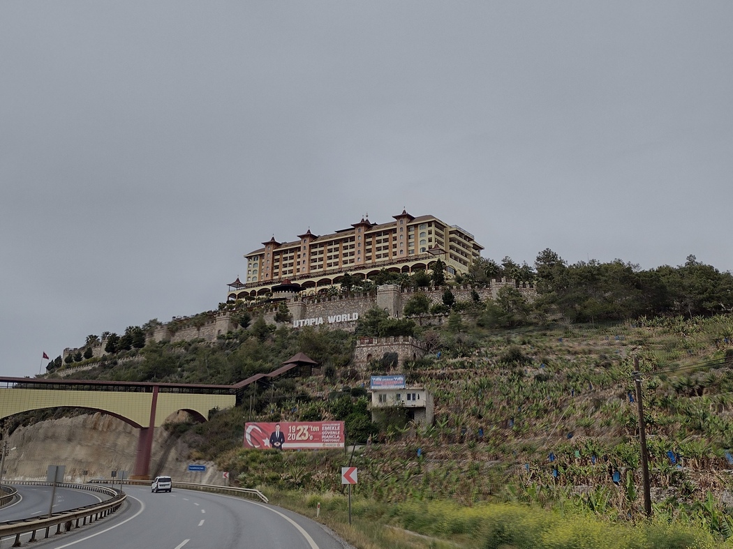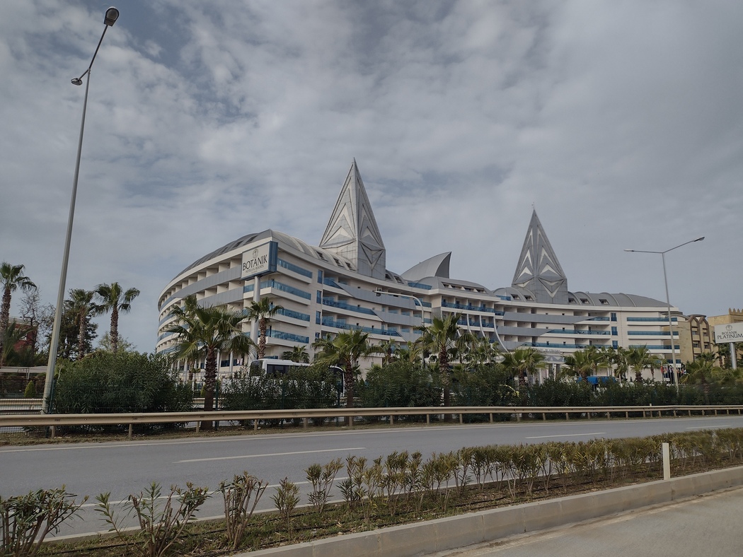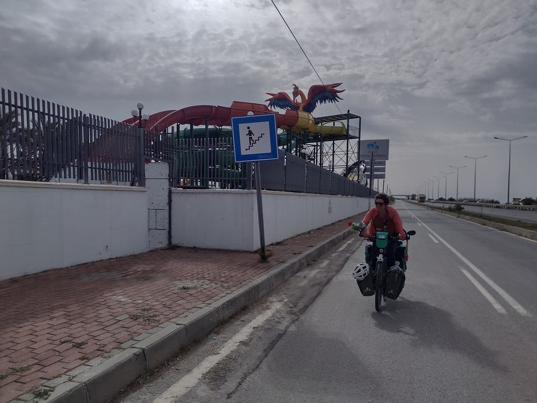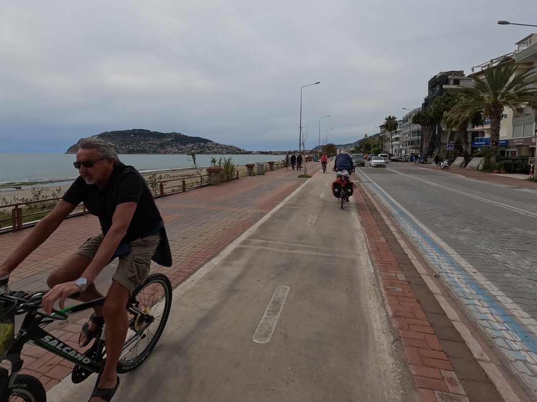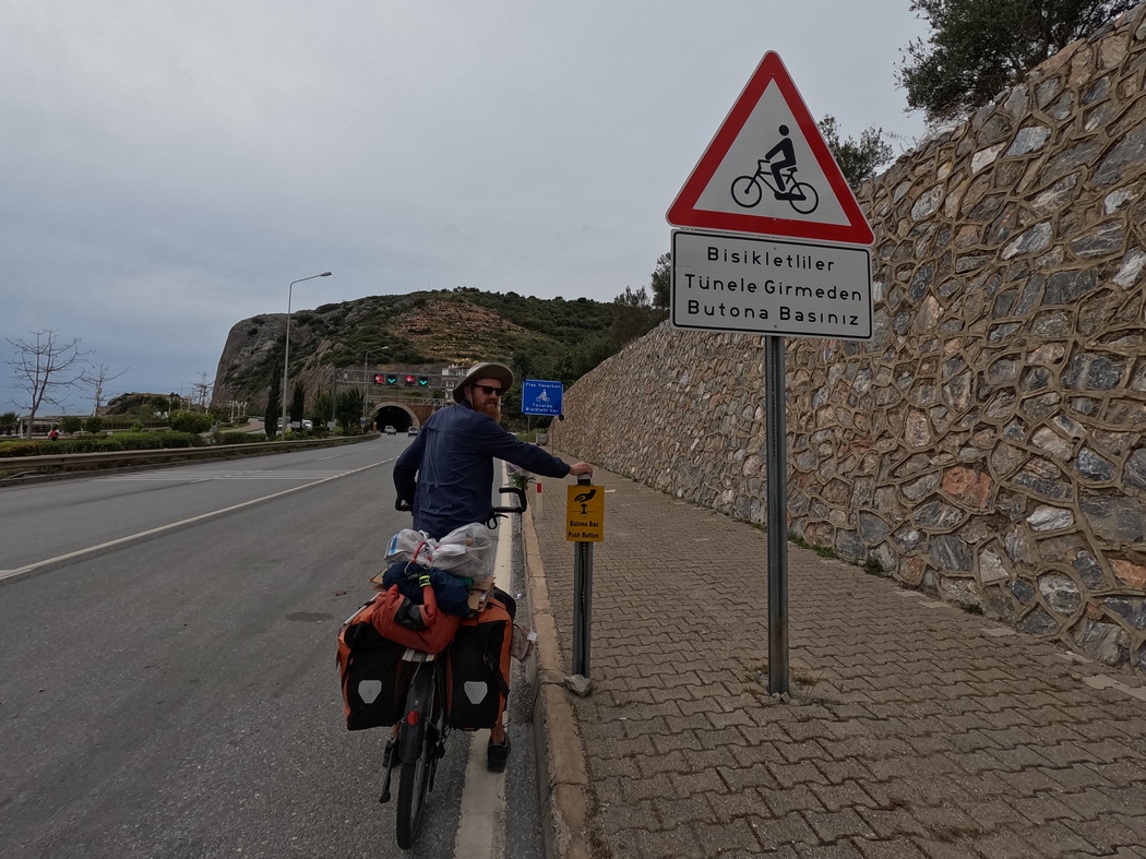 Ab Alanya bis Antalya kamen wir dann aus dem Staunen nicht mehr heraus: Woher sollen all die Menschen kommen, um die bereits vorhandenen und noch im Bau befindlichen Hotels zu bewohnen? Der Andrang schien zu diesem Zeitpunkt eher gering, obwohl in Deutschland gerade die Osterferien begonnen hatten. Leider wurde nun auch der Verkehr für etwa 100 Kilometer nur schwer erträglich und dabei waren die Fahrrad-Signale an den Tunneln auch nicht gerade hilfreich. Als Radfahrer kann man vor einigen Tunneln einen Knopf drücken, der (meistens) ein Signal in Form eines Blinklichts rund um ein statisches Hinweisschild auslöst. Den Kraftfahrern soll hiermit signalisiert werden, dass einer oder mehrere Radfahrer:innen im Tunnel sind. Der erste Knopf funktionierte, der zweite löste kein Signal aus und am dritten Tunnel blinkte das Signal einfach dauerhaft. Wir gingen also davon aus, dass diesem Hinweis wenig Beachtung geschenkt wird (im besten Fall) oder die falschen Schlüsse daraus gezogen würden.