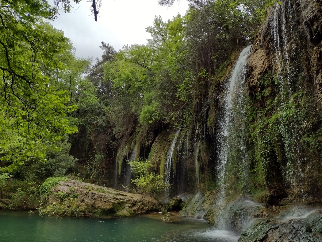 Die Suche nach einem Schlafplatz am Vortag hatte uns in die Nähe eines Naturparks mit sehenswertem Wasserfall getrieben. Wir brachen an diesem Tag daher erstmals unseren Vorsatz keine touristischen Sehenswürdigkeiten zu besuchen und schauten uns für einen Eintrittspreis von nicht einmal 1,50 € den Kurşunlu Wasserfall und den darum gelegenen Park an. Nachts hatte es geregnet und nach einer Pause setzte der Regen wieder ein als wir unsere Räder aus dem Wald geschoben hatten. Während wir uns in Poncho und Regenhose kämpften, schenkte uns ein Gärtner Chili-Schoten, die er gerade im angrenzenden Treibhaus geerntet hatte und die sich als nur mäßig spicy erwiesen.