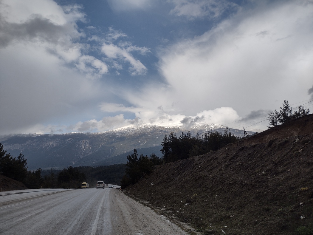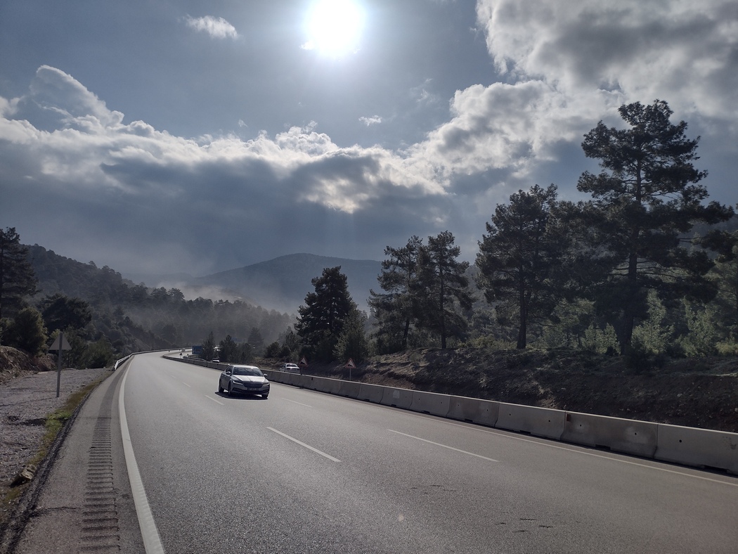 So entschied er sich bei der darauffolgenden Abfahrt sich an einer Tankstelle in ein WiFi einzuschnorren und stellte dabei fest, dass Julia nur knapp 15 Minuten hinter ihm lag. Wiedervereint nahmen wir dann noch den dritten Pass, denn es schien uns ratsam die Nacht nicht oben im West Taurusgebirge zu verbringen sondern wieder ein paar hundert Meter nach unten zu gelangen.