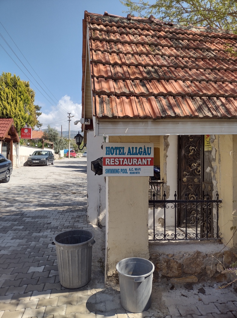 Bei unserer Frühstückspause kurz hinter der Stadt setzte dann der erste kurze Regen ein und wenige Kilometer weiter setzte uns schließlich ein kräftiger Schauer in kurzer Zeit völlig unter Wasser. Wir konnten uns zwar unter ein Vordach eines kleinen Krämerladens retten, um unser erstes Ekmek zu genießen, aber da waren wir wie gesagt schon vollkommen durchnässt. Spaß machte das ganze nicht und so landeten wir schon zur Mittagszeit und nach nicht einmal 30 Kilometern in einem Hotel, wo wir mit der Gesamtsituation bei einem ausgehandelten Preis von 1.000 Lira nicht so recht zufrieden waren. Regnen sollte es den Rest des Tages dann auch nicht mehr, aber der Sturm tobte unvermindert bis in die Nacht fort und rüttelte an Fenstern und Türen.