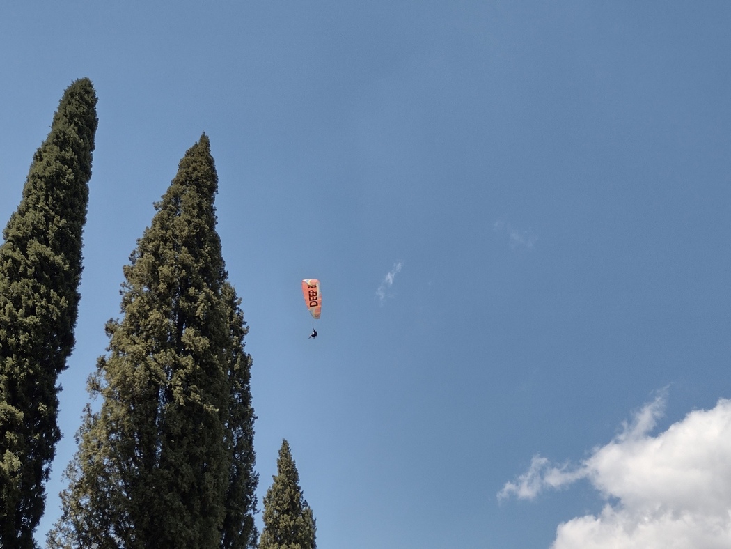 Doch am Ende wurde es nicht so schlimm wie zwischenzeitlich befürchtet. Der Strom der Flugzeuge ließ bald nach, die Hunde trotteten nach einer Weile unverrichteter Dinge und ohne wirklich aufdringlich geworden zu sein von Dannen und die Grillfreunde beließen es bei einem Abendessen und vielleicht vier angeskippten Liedern aus dem Lautsprecher ihres Wagens. Kurz nach Einbruch der Dunkelheit rollten sie wieder davon.