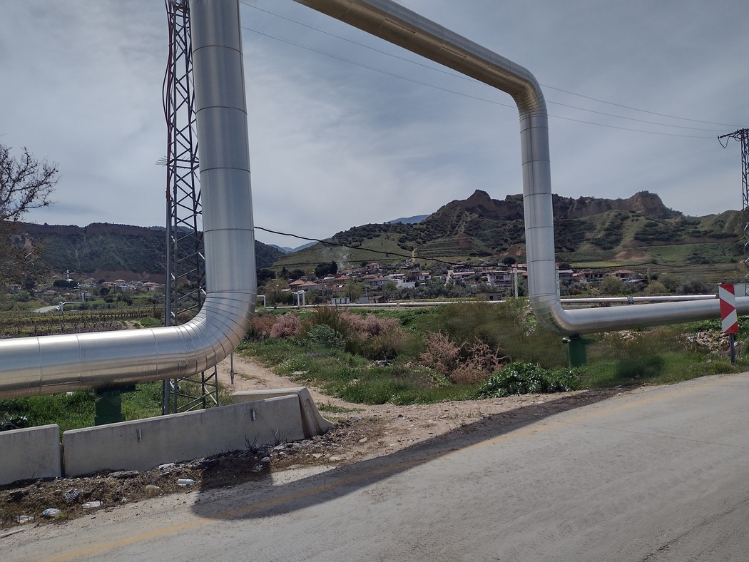 Die Bauern in dieser Gegend widmeten sich übrigens vorwiegend dem Weinanbau, was nicht nur uns als temporären Wahl-Wiesbadenern offenkundig ins Auge sprang. Keinen Reim machen konnten wir uns allerdings auf den Umstand, dass entlang der Rebstöcke nagelneue Edelstahlrohrleitungen verlegt waren und alle paar Kilometer gewaltige Dampfwolken aus Industrieanlagen stiegen, die über die Rohre verbunden waren.