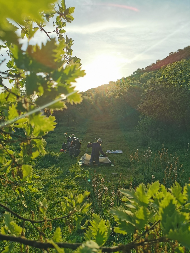 Nach dieser eindrucksvollen Begegnung, schafften wir es an dem halben Reisetag noch ca. 45 km weiter und verbrachten Abend und Nacht in einem jungen Eichenwald wo wir Besuch von ein paar irritiert dreinblickenden Rindern bekamen.