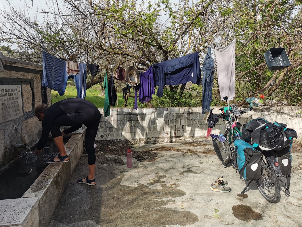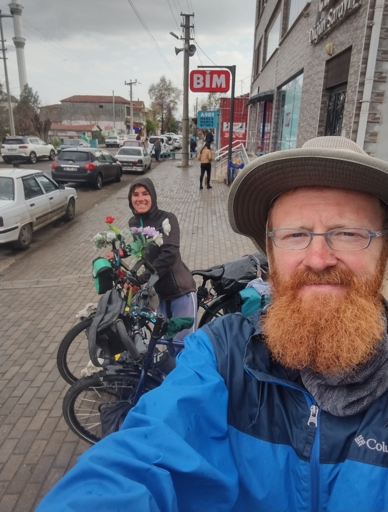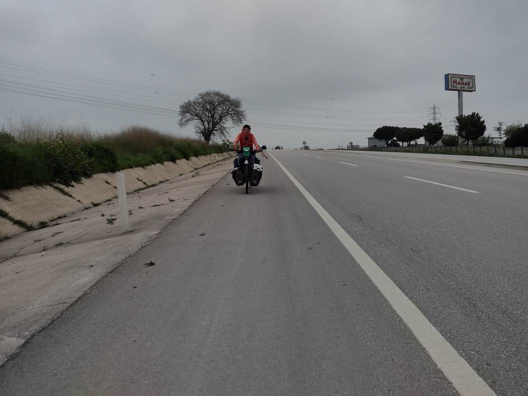 Unter anderem da wir der Meinung waren, dass wir uns die Fähigkeit bewahren sollten noch teilweise auch offline zurecht zu kommen, hatten wir nur eine türkische Sim-Karte erworben, sodass eine Fernkommunikation nur unter erschwerten Bedingungen möglich war. Tilmann hatte sich schließlich entschieden weiter zu fahren, um ein offenes WiFi zu finden (in Alasehir Belediyesi war das nicht geglückt), was sich für lange Zeit jedoch als unmöglich herausstellte, da die Gegend nun äußerst dünn besiedelt war. So war er zum Versuch übergegangen mehrere Passanten zu befragen, ob diese vor kurzem schon einmal so ein Reiserad gesehen hätten, aber es sollte bei dem Versuch bleiben, da man sich gegenseitig einfach nicht wirklich verstehen konnte.