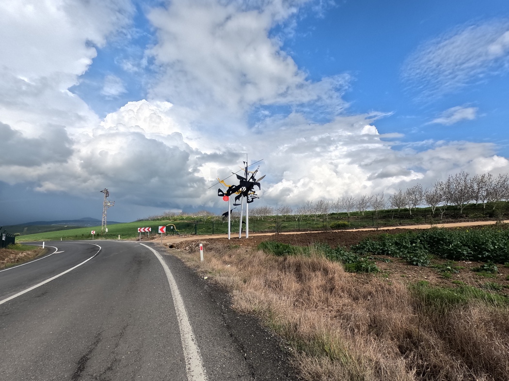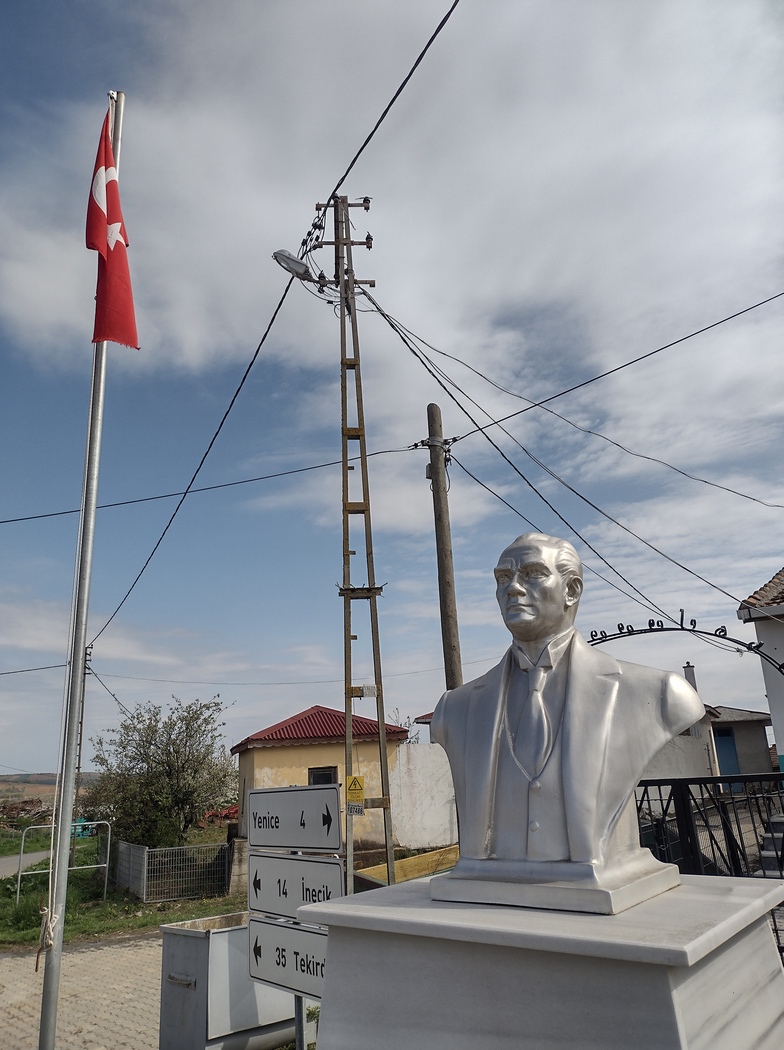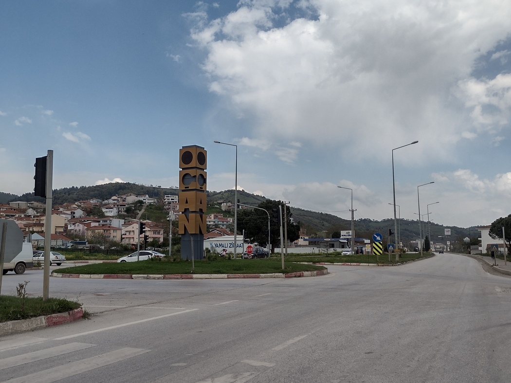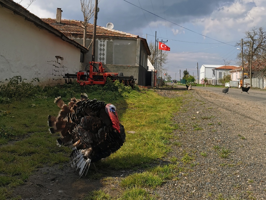 Am Tag 383 war es dann schließlich so weit. Wir hatten an diesem Tag einen stolz und aufgeregt herumstolzierenden Truthahn vor einer Türkei Flagge (turkish Turkey, haha) beobachtet und einen letzten Akt türkischer Gastfreundschaft in Form von Süßwarenreichungen erfahren, als wie nach 333 Tagen kurz vor unserem zweiten Besuch in Lüleburgaz wieder unsere eigene Route kreuzten und so den unteren Teil der schiefen 8 auf unserer Europa-Vorderasien-Tour komplettierten. Weniger episch hätte dieser bedeutungsschwangere Ort kaum sein können: Es war eine Kreuzung im Städtchen Durak wo sich ein Bim neben einem A101 einfand. Damit war der Spot immerhin sehr repräsentativ für die Türkei. Zur Feier des Tages kauften wir daher gleich Mal für ca. 5 Euro mehr bei Bim ein und schwangen uns für die letzten Kilometer wieder auf unsere Patrias.