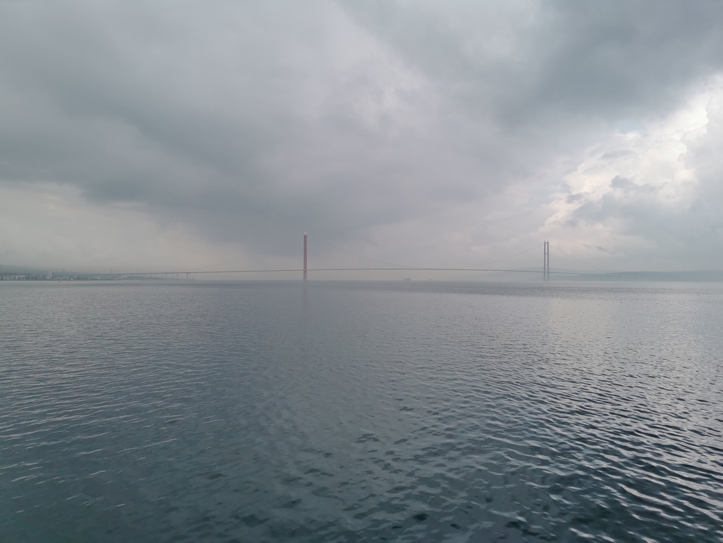 Dann hieß es zum vorerst letzten mal Abschied nehmen von Julia und Mark. Für sie ging es jetzt (wieder) nach Osten, während wir nun kurz davor waren nach Europa zurückzukehren. Dazu fuhren wir an der Küste der Dardanellen noch ein kurzes Stück in Richtung Südwesten bis in das Hafenstädtchen Lapseki. Dort nahmen wir die Fähre nach Gelibolu in Ostthrakien, da wir uns nicht sicher waren, ob wir die imposante und erst im Vorjahr eröffnete Çanakkale-1915-Brücke, die noch ein paar Kilometer weiter gewesen wäre, wirklich befahren durften. Der Preis für die Überfahrt lag bei einem Euro pro Person, oder waren es doch nur 50 Cent? Jedenfalls mussten wir einmal mehr für unsere Fahrzeuge wegen ihres offenbar zu harmlosen Charakters kein Entgelt entrichten.