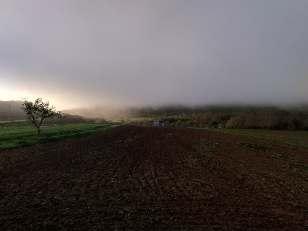 Es ging schon am Abend des Besuchs nach Pamukkale los: Wir hatten zwischen all den Feldern und Äckern nahe der Hauptstraße erhebliche Schwierigkeiten einen geeigneten Schlafplatz zu finden und landeten schließlich in einem gemeinem feuchten Tal an einer Schotterpiste. Aufgrund der herankriechenden feucht-kalten Luft entschieden wir uns entgegen unserer unserem üblichen Habitus (weil es Aufmerksamkeit erregt und sich der Rauch immer mindestens in Tilmanns Bart festsetzt) ein Feuer zu entfachen. Weder das Entzünden noch die Instandhaltung gestaltete sich aufgrund des allgemein humiden Milieus als wirklich einfach, sollte mit etwas Anstrengung letztendlich aber doch gelingen.