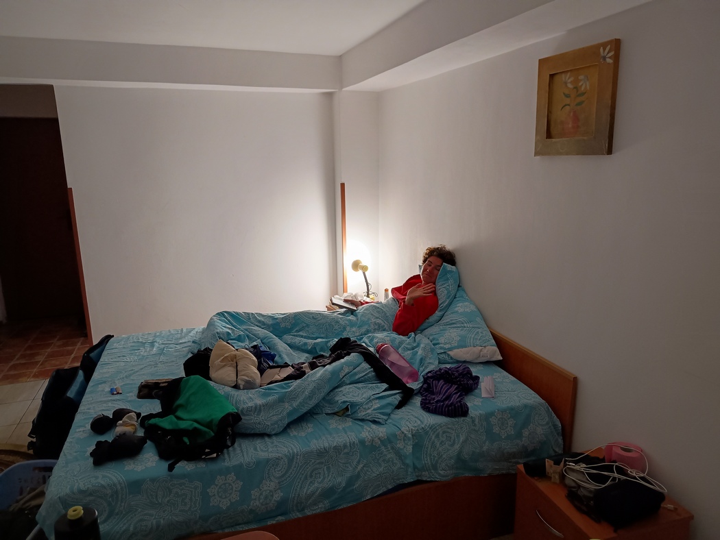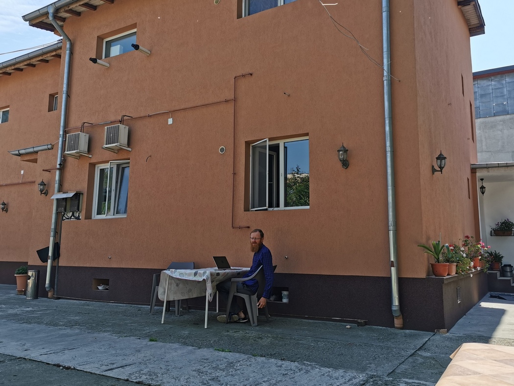 Selten haben wir in einer kommerziellen Unterkunft einen so schlechten Sauberkeitsstandard vorfinden müssen, was Tilmann verwunderte, da er das rumänische Gastgewerbe als mit besonders guten Preis-/Leistungsverhältnis und vorbildlich in Sachen Hygiene in Erinnerung hatte. Immerhin durften wir die Waschmaschine so oft wir wollten kostenlos benutzten, weshalb wir auch unsere Schlafsäcke mal wieder einer Reinigung unterzogen und konnten im Hof tun und Lassen was wir wollten und bekamen Werkzeug geliehen. Im Hof hielten wir uns in den drei Tagen ohnehin recht oft auf, da das WiFi noch nicht einmal zuverlässig bis zum einzigen Fenster neben der Kochnische reichte.
