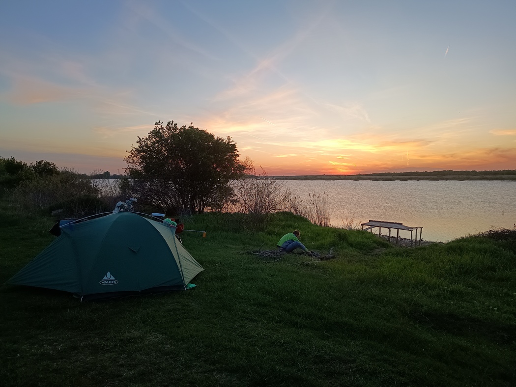 Zum Abend schlugen wir das Zelt an einem kleinen See nahe der Ortschaft Dridu auf. Die vielen Wasservögel machten das Wasser jedoch unattraktiv und die Unmengen an Plastikabfällen am Ufer taten ihr übriges. Schließlich fanden wir noch ein recht sauberes nettes Plätzchen mit dem wir zufrieden waren. Zum ersten mal auf der Reise beschlich uns aber ein latent ungutes Gefühl, ob unserer Sicherheit. Freilich nicht wegen Leib und Leben aber durchaus wegen Eigentum. Denn wir hatten in der letzten Ortschaft doch einige Zwielichtige Gestalten gesehen, die sich an ihren Bierflaschen festhielten und von denen wir uns sehr prüfend ins Visier genommen gefühlt hatten. Unsere Ankunft am See war auch nicht unentdeckt geblieben.