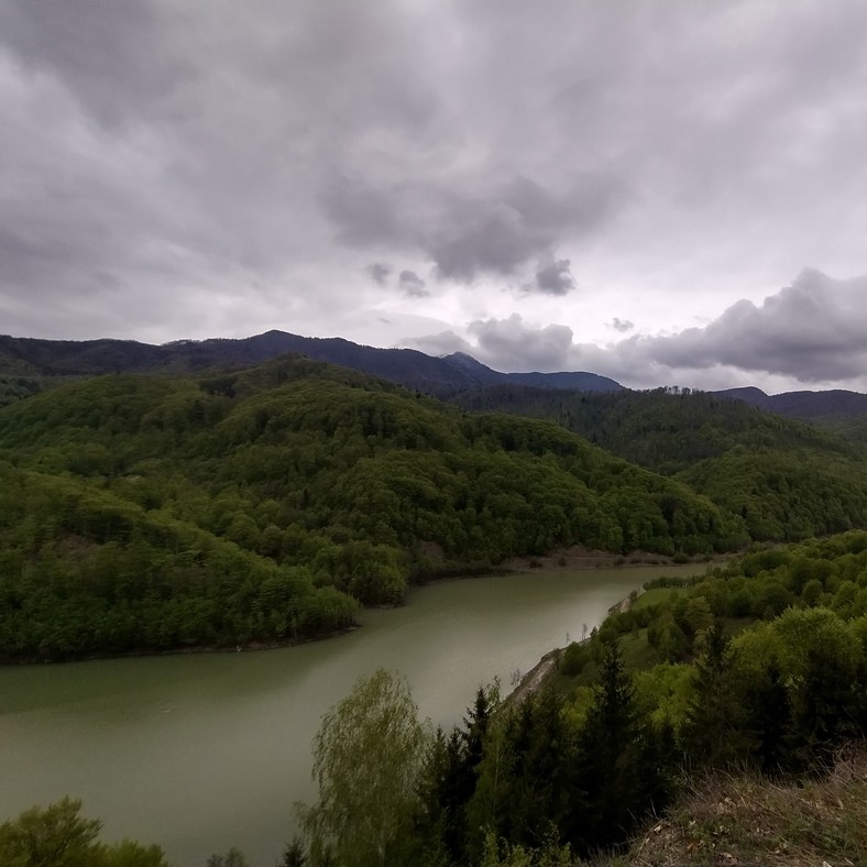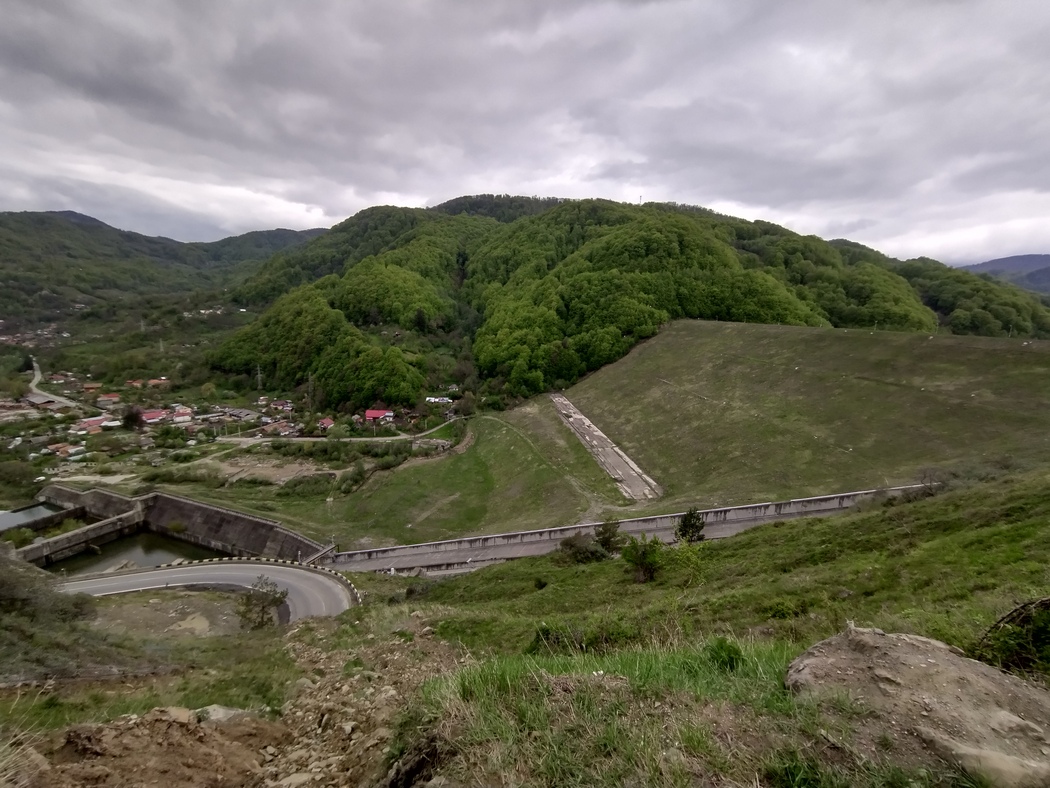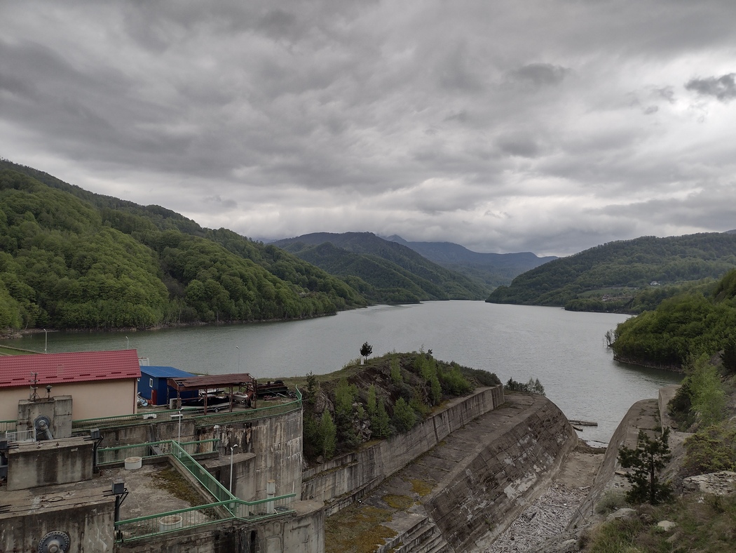 Am Vortag waren wir dem Verlauf der Buzau zwar schon eine Weile gefolgt, so richtig an Höhe gewonnen hatten wir dabei aber noch nicht. Bei Wolken und frischen Temperaturen versuchten wir noch immer die Schnellstraße 10 zu meiden, wozu es allerdings kaum noch Möglichkeiten gab als das Tal immer enger wurde und es nun ein wenig ernsthafter bergauf ging. Allerdings hatte der Verkehr sich inzwischen einigermaßen beruhigt. Der einzige richtig steile Anstieg, der allerdings auch von überschaubarer Länge blieb, war jener parallel zur Mauer des Siriu-Stausees hinauf, an die sich Tilmann noch von seinem zehn Jahre zurückliegenden Trip erinnerte. Damals, es war noch seine persönliche prä-Smartphone-Ära gewesen, hatte er eine Karte als Planungsgrundlage gehabt, in der dieser Stausee noch gar nicht verzeichnet gewesen war.