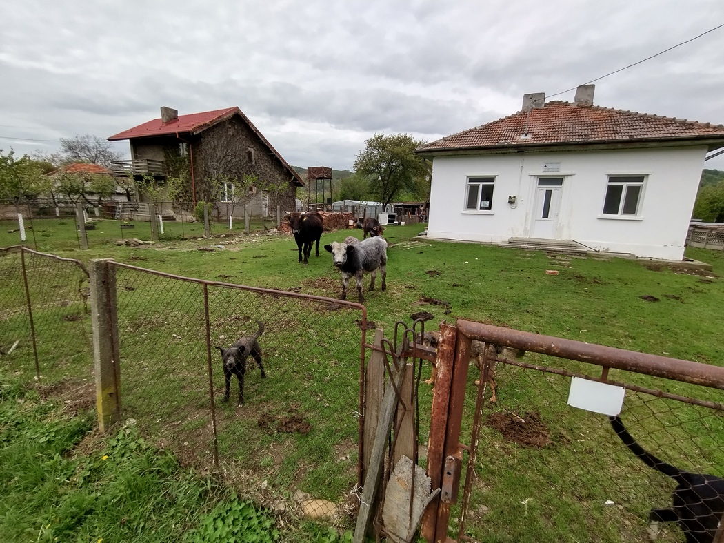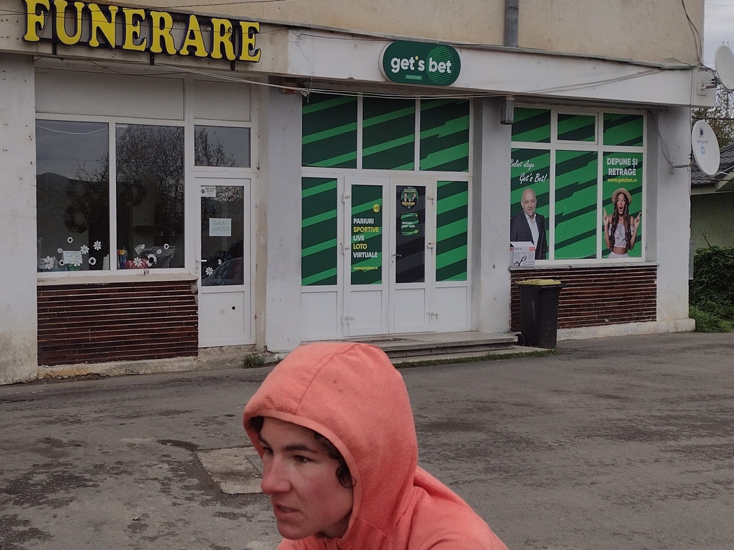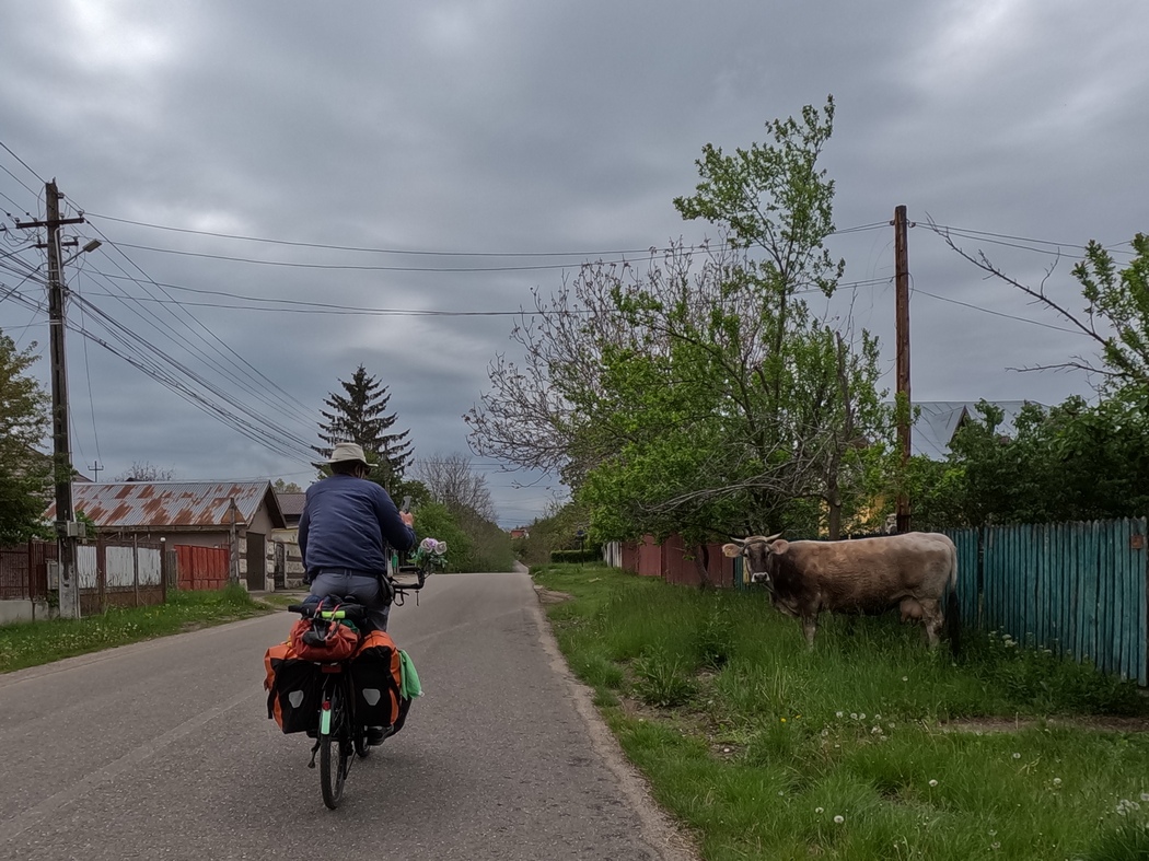 Julia war an einer Regenjacke interessiert, da sie keine richtige hatte und ihr Tilmanns Cape zu lästig war (ihren eigenen Poncho hatte sie mittlerweile abgestoßen, da dieser zu nervig im Wind flatterte). Tilmann hatte in Israel eine echte Columbia Regenjacke gefunden, das ist die blaue, die ihr seitdem teilweise auf den Bildern sehen könnt und sein Cape daher nicht mehr benötigt. Da die Ausgaben in Bukarest sich nicht nur auf ein neues paar Schuhe und die Unterkunft sondern auch auf ein neues Handy für Julia erstreckt hatten (daher sind die Bilder jetzt teilweise wieder farbenfroher) wollten wir die Reisekasse aber nicht noch stärker strapazieren. Der Einzelhandel ist in Rumänien auch in den kleinen Dörfern extrem gut ausgebaut (überall gibt es diverse Läden, noch der kleinste Ort verfügt über mindestens eine Apotheke) und so fanden wir nach wenigen Kilometern tatsächlich einen Second-Hand-Laden, der eine echte Helly Hansen Jacke für lächerliche 2 Euro anbot. Leider, leider war diese aber an den Armen wenige Zentimeter zu kurz für Julia, sodass uns die Verkäuferin zum Trost noch einen Einweg-Poncho mitgab, den es uns nicht gelang auszuschlagen.