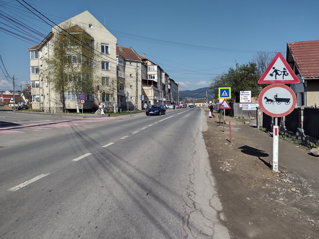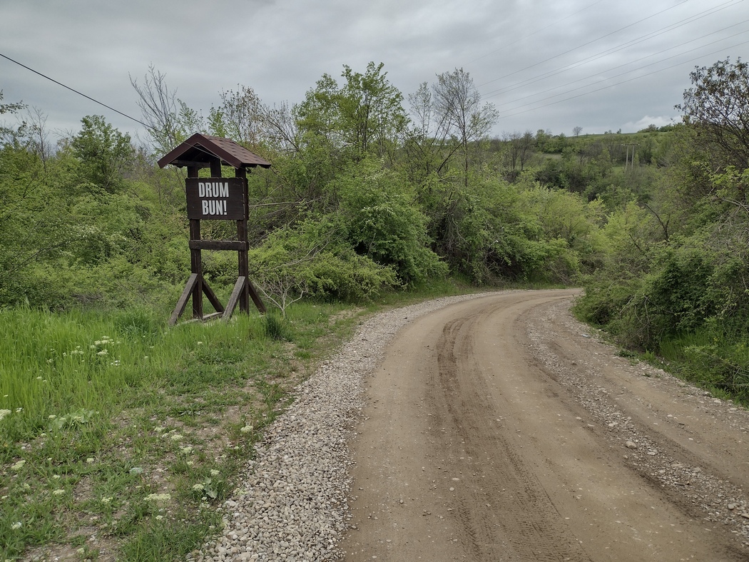 Wir jedenfalls wollten nun die Schnellstraßen um jeden Preis meiden und wechselten daher bei der nächsten Gelegenheit auf die linke Flussseite der Buzau und nahmen dafür auch einige schwer befahrbare Schotterpisten-Abschnitte und abenteuerliche Hängebrücken und Gleisüberquerungen in Kauf. „Drum bun!“ – „Gute Fahrt!“ wünschten uns die Straßenschilder dennoch unbeeindruckt. Da die Sonne sich nicht einmal zeigte an diesem Tag, waren wir schon fast gewillt zur Aufheiterung eines der unzähligen Wettbüros aufzusuchen, konnten uns aber gerade noch einmal zügeln.