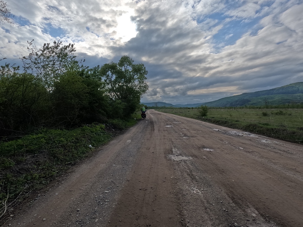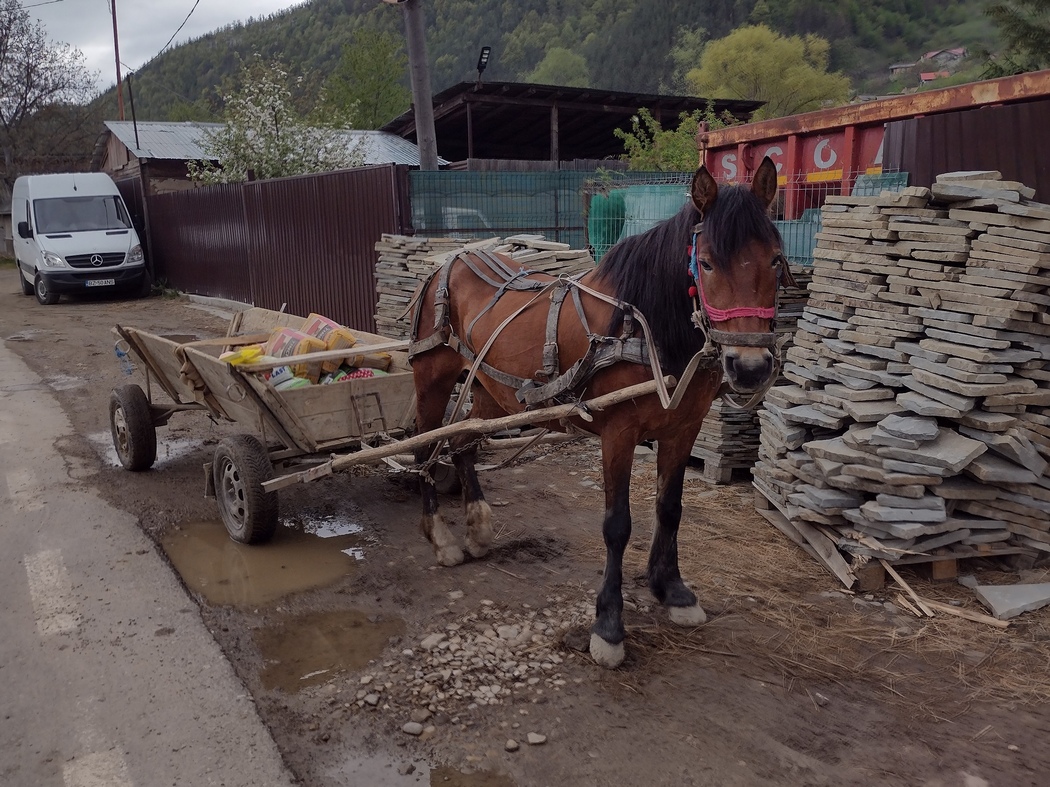 Als Julia dann am späten Nachmittag einen Platten hatte, diskutierten wir unser Zelt einfach an Ort und Stelle aufzuschlagen, denn der Ort war tatsächlich abseits der Straße einigermaßen geeignet. Dagegen sprach aus unserer Sicht jedoch, dass uns wenige Kurven zuvor ein paar vorwitzige Roma-Kinder auf ihrem Pferdekarren bzw. zu Fuß verfolgt hatten, in der Hoffnung ein paar Lei erbetteln zu können. Wir verspürten wenig Lust auf eine weitere Begegnung in immobilen Zustand und rafften uns noch einmal für ein paar weitere Kilometer auf.