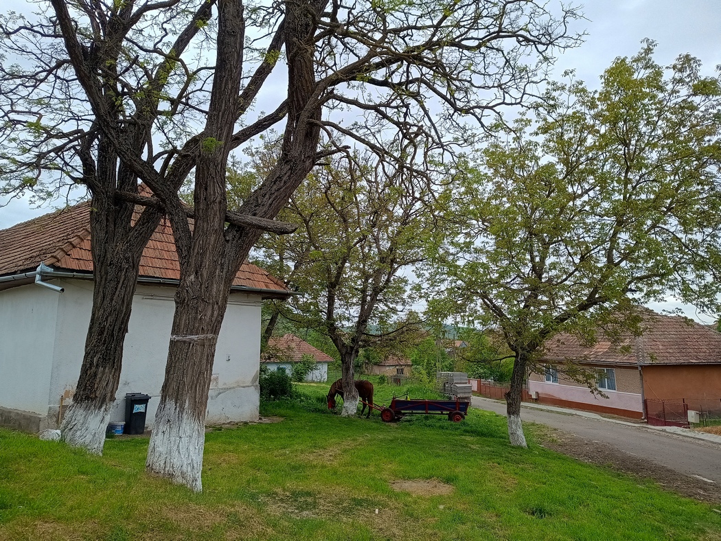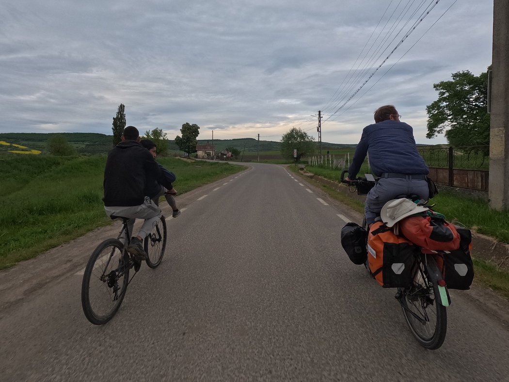Das Wetter war mittlerweile freundlicher geworden und es ließ sich tags wie nachts draußen ganz gut aushalten und so radelten wir an noch unberankten Hopfen-Klettergerüsten und kleinen Fischteichen, an denen mehr Angler saßen, als Fische in den Teich passten, vorbei Richtung Norden. Die Dörfer trugen auch hier teilweise noch deutsche (und ungarische) Zweitnamen, doch mit den Kirchenburgen war es bald vorbei. Sonntags dröhnte laute Musik aus den Häusern (sofern sie von Romafamilien bewohnt waren) und alle saßen draußen oder waren im Dorf unterwegs.