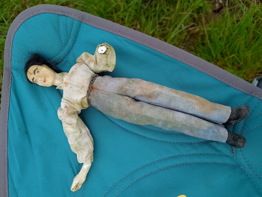 Um sich in dieser relativen Tristesse ein wenig Erheiterung zu verschaffen, ersann er einen harmlosen Schabernack, um Julia aufs Korn zu nehmen. Er hatte unterwegs eine Puppe gefunden, die nun als Requisite für die kleine Neckerei zum Einsatz kam. Als Julia schließlich heranrollte, erzählte er ihr, dass ihn unser Nachtlager an einen Found-Footage-Film erinnere, der als einziger Film dieser Gattung, als derjenige gälte, bei dem nicht ausgeschlossen sei, dass es sich um authentische Aufnahmen und tatsächlich keine Fiktion handelte. Der Horror begann in diesem Film am Morgen nach der Nacht an diesem so frappierend ähnlich aussehenden Platz, als die Gruppe junger Ausflügler vor ihrem Zelt eine Puppe gefunden hatten. Da Julia aber schon am Abend noch einmal das Zelt öffnete, als es noch hell war entdeckte sie die Puppe sogleich und war lediglich mäßig amüsiert. Immerhin fiel der Puppe bei Berührung noch der Kopf ab und ließ sich dann eine Weile nicht mehr auffinden, was immerhin den Hauch eines leichten Grusels aufkommen ließ. Ja, auch so verbringen wir Teile unsere Zeit miteinander.