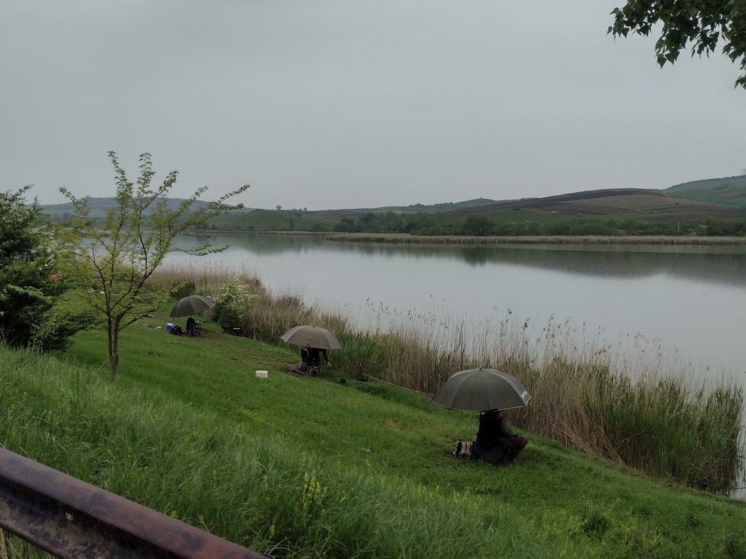 Mal wieder fuhren wir durch Nebel und Nieselregen. Die Umgebung wurde eigentlich wieder wunderschön, doch durch diesen Schleier, konnten wir die unzähligen kleinen Seen kaum sehen und erst gar nicht genießen. Wie bereits berichtet, störte die Rumänen dieses schlechte-Laune-Wetter kaum, vor allem hielt es sie nicht davon ab ihrer anscheinend allerliebsten Outdoor-Aktivität nachzugehen, die rein gar nichts mit Bewegung zu tun hat: Dem Angeln. Als der Regen dann doch etwas stärker wurde, harrten wir unter einem Vordach des ortansässigen Magazin Mixt aus.