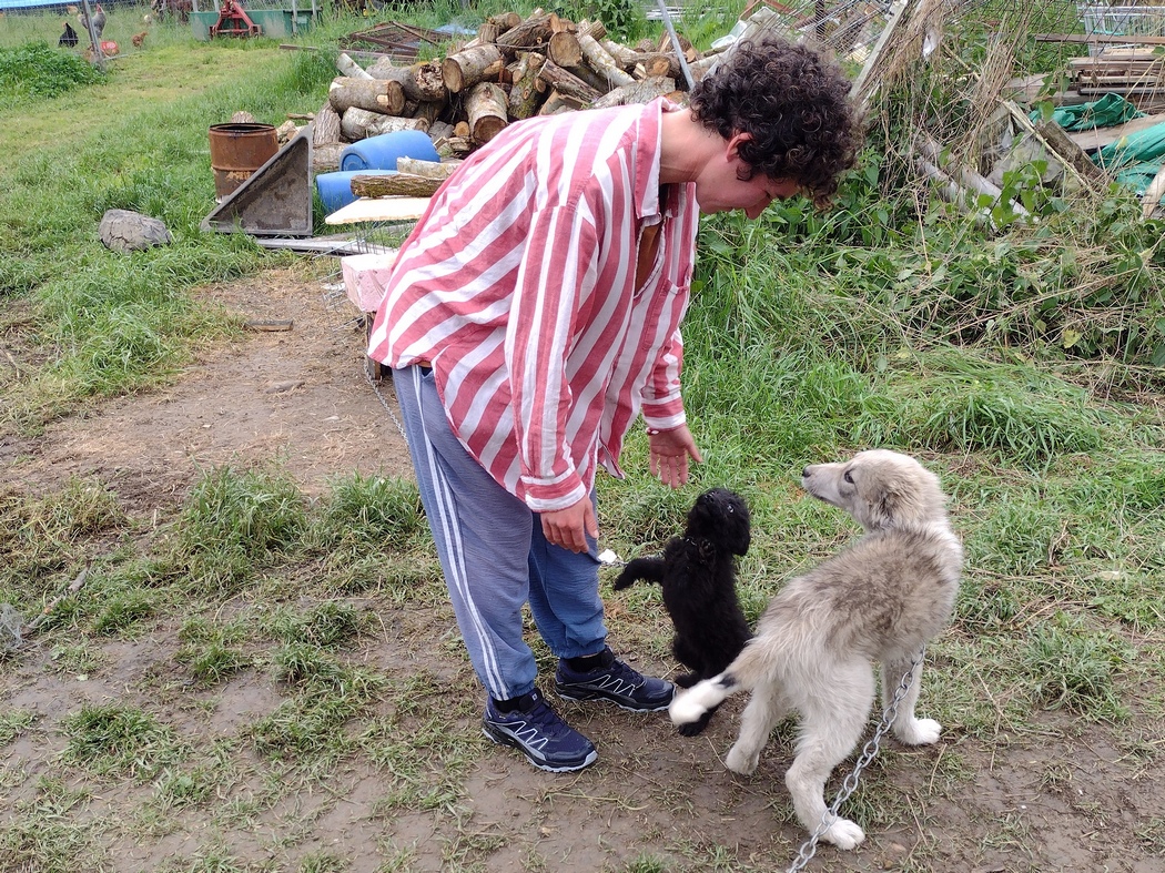 Am Abend aber fand unser rumänisches Gastfreundlichkeitserleben (nicht Gastfreudigkeit) seinen Höhepunkt. Nachdem wir die etwas unansehnliche Stadt Dej hinter uns gelassen hatten (hier hatten wir nach langer Zeit mal wieder einen Radreisenden getroffen, einen Holländer) und Tilmann sich verfahren, indem er irrtümlich auf der Hauptstraße einfach weiter geradeaus gefahren war (12 km zusätzlich), wollten wir auf einer schöne Strecke am Ufer der Someș ein Lager suchen. Die Someș war übrigens vom Cyanid-Unfall in Baia Mare im Januar 2000 betroffen. Davon sahen wir zwar nichts, wollten uns allerdings wieder etwas vorsichtiger bezüglich des Bärs verhalten. Daher beschlossen wir in einem Dorf nachzufragen, ob wir auf einem leerstehenden Grundstück zelten könnten. Der Mann, der gegenüber an sein Tor getreten war und Deutsch konnte, lehnte dies entschieden ab, was uns zunächst fast ein wenig rüde erschien. Wir ahnten nicht, wie wir uns dabei getäuscht hatten. Denn fast im selben Atemzug lud er uns ein, wir sollten doch bei ihm und seiner Familie im Garten unterkommen. Bald waren alle versammelt: Vater, Mutter und zwei Söhne, die sich alle ganz herzlich um uns kümmerten. Und es schnell war klar, dass es nicht beim Zelten im Garten bleiben sollte. Sie wollten alle im Wohnzimmer zusammenrücken und das Schlafzimmer der Eltern für uns frei machen! Dann zeigten sie uns ihre Hühner und Ziegen, beeilten sich die Dusche zu reparieren und bereiteten ein leckeres Abendessen aus köstlichem frischen Gemüse und einer Grüner-Salat-Suppe.