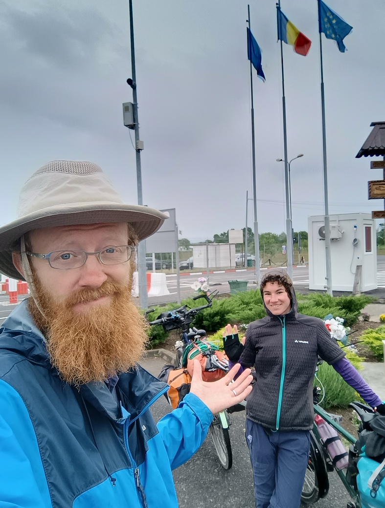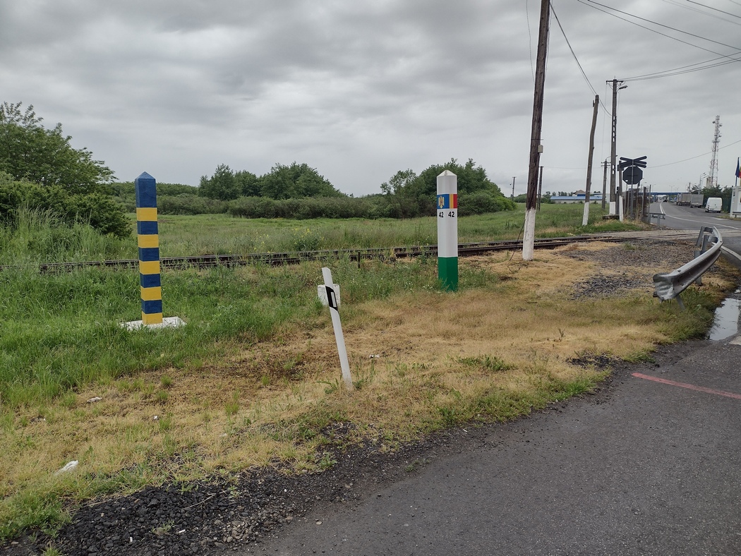 Die Straße zur Grenze war leider ein Graus und als wir schließlich aus Rumänien ausreisten, fragten uns die Grenzbeamtinnen verwundert, ob wir uns sicher seien, bei dem was wir taten und dass sie sich nicht sicher seien, ob wir mit den Rädern in die Ukraine einreisen dürften. Wir durften nicht. Der ukrainische Soldat, der auf Höhe des Grenzsteins die Einreisewilligen vorsortierte, war erwartungsgemäß überrascht und rief seinen Vorgesetzten herbei. Dieser erklärte uns, dass wir mit allem motorisierten einreisen könnten, nur nicht mit dem Fahrrad. Wenn wir es richtig interpretierten, schlug er sogar vor, dass wir einen Transporter oder LKW um Mitnahme bitten könnten. Wir wollten aber unseren eigenen Regeln treu bleiben (nur im äußersten Notfall werden wir multimodal) und reisten wieder in Rumänien ein. Der Grenzbeamte auf der Einreiseseite schien regelrecht verärgert über unsere Torheit. Doch vielleicht sollte es nicht die größte Torheit, oder knapp vereitelte Torheit, an diesem Tag geblieben sein.