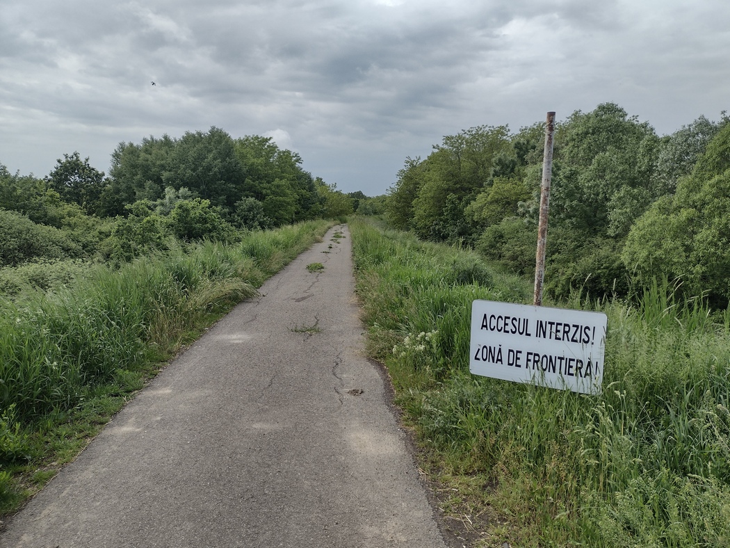 Zunächst wurde seine Zuversicht auch wieder geweckt, als er durch ein Schild an einer Kreuzung des Radwegs auf den 3 km entfernten Radweg-Grenzübergang hingewiesen wurde. Dann aber die Ernüchterung wenige hundert Meter vom Dreiländereck Rumänien-Ukraine-Ungarn: Ein Schild mit „Betreten des Grenzgebietes verboten“. Da ein im selben Moment eintreffendes Vater-und-Sohn-Gespann auch kein „ach das muss man nicht so ernst nehmen“ Signal aussendeten kehrte er um zum in trügerischer Absicht nicht demontierten Wegweiser, wo er wieder auf die hinterherhinkende Julia traf.