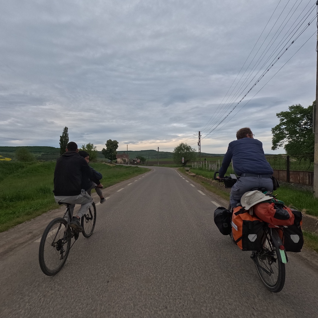 Das Wetter war mittlerweile freundlicher geworden und es ließ sich tags wie nachts draußen ganz gut aushalten und so radelten wir an noch unberankten Hopfen-Klettergerüsten und kleinen Fischteichen, an denen mehr Angler saßen, als Fische in den Teich passten, vorbei Richtung Norden. Die Dörfer trugen auch hier teilweise noch deutsche (und ungarische) Zweitnamen, doch mit den Kirchenburgen war es bald vorbei. Sonntags dröhnte laute Musik aus den Häusern (sofern sie von Romafamilien bewohnt waren) und alle saßen draußen oder waren im Dorf unterwegs.