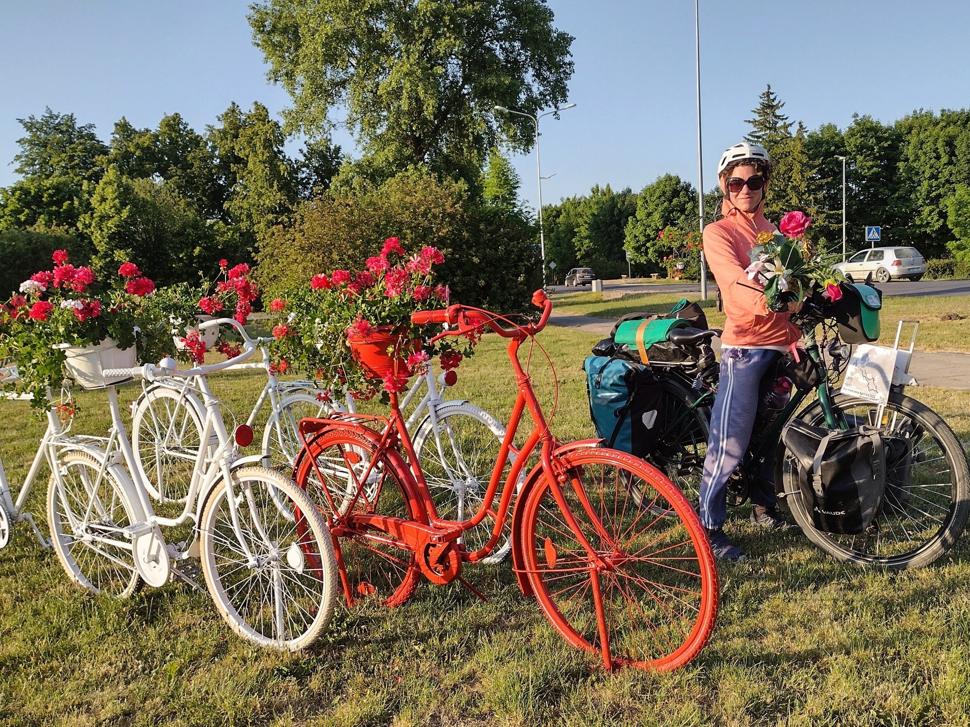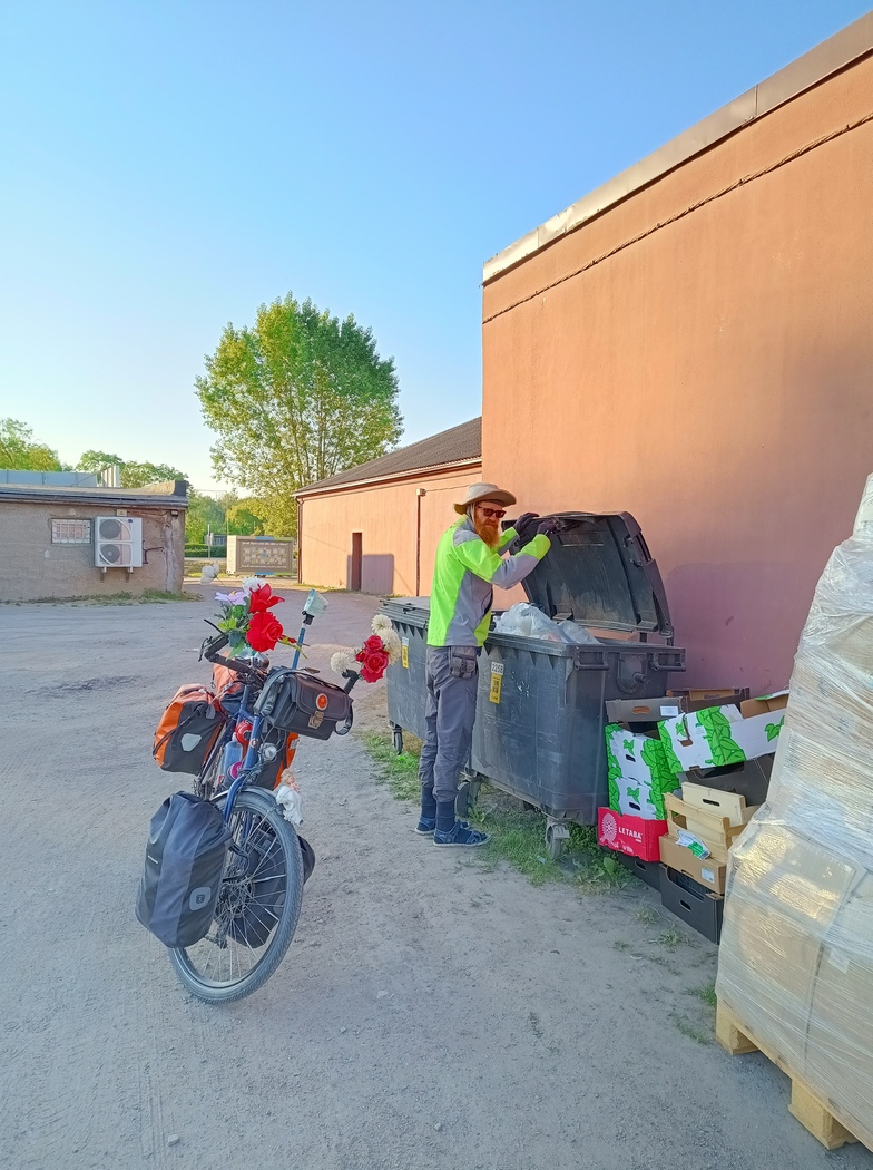 In den ersten Dörfern fiel uns auf, dass die Häuser und Gärten nicht besonders gepflegt waren, was im Kontrast zu den ordnungsliebenden Polen besonders ins Auge stach. Als wir gegen Mittag in den etwas größeren Ort Kalvarija kamen, nahmen wir wahr, dass auch eine größer als zufällig erscheinende Anzahl von Passant*innen keinen besonders gepflegten Eindruck machten. Dafür waren sie sehr interessiert an uns, wir wurden wieder mehrfach angesprochen, was wir seit unserer Rückkehr in die EU eigentlich kaum noch erlebt hatten.