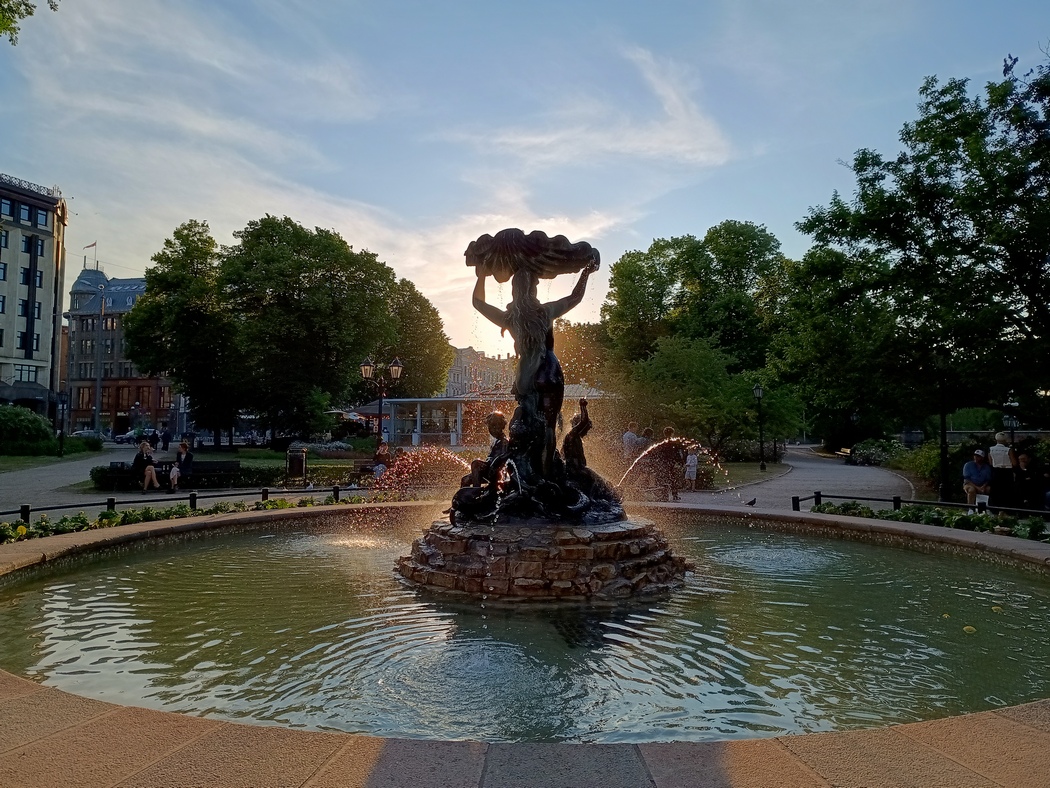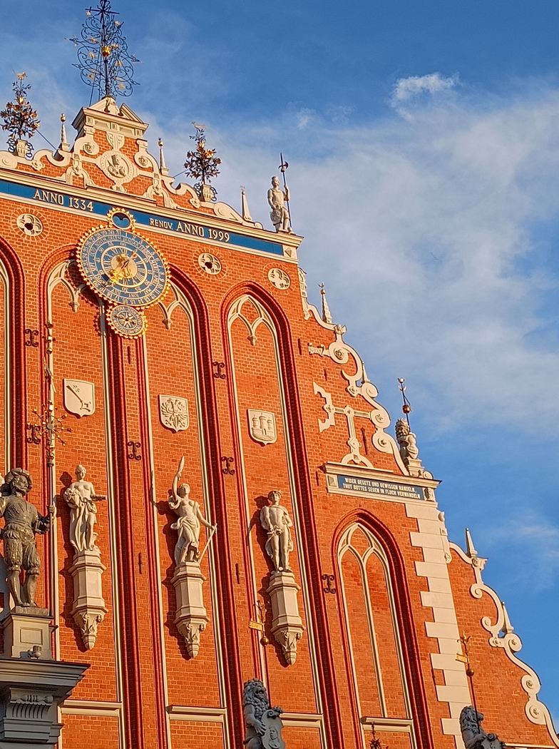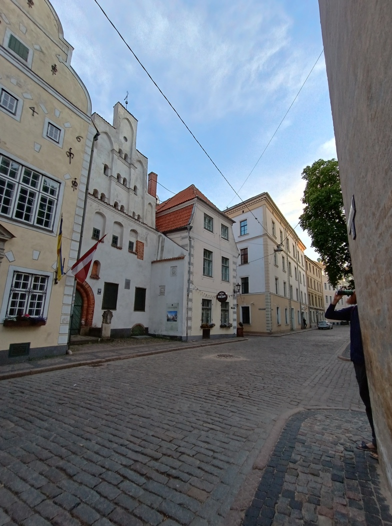 Erst am Abend unseres zweiten Tages in Riga zogen wir los, die Stadt zu erkunden, die mit allerlei hübschen Bauwerken, doch ohne überzeugendes Stadtleben an diesem Sonntagabend etwas Museumshaftes hatte. Wir entdeckten eine Kulisse, die anscheinend für eine deutsche Filmproduktion auf dem Domplatz aufgebaut war, worauf die deutschen Autokennzeichen der Produktions-Fahrzeuge und Schilder in den Kulissen hinwiesen. Vielleicht wird es ja in nächster Zeit einen historische ZDF-Reihe geben, die in Riga spielt.