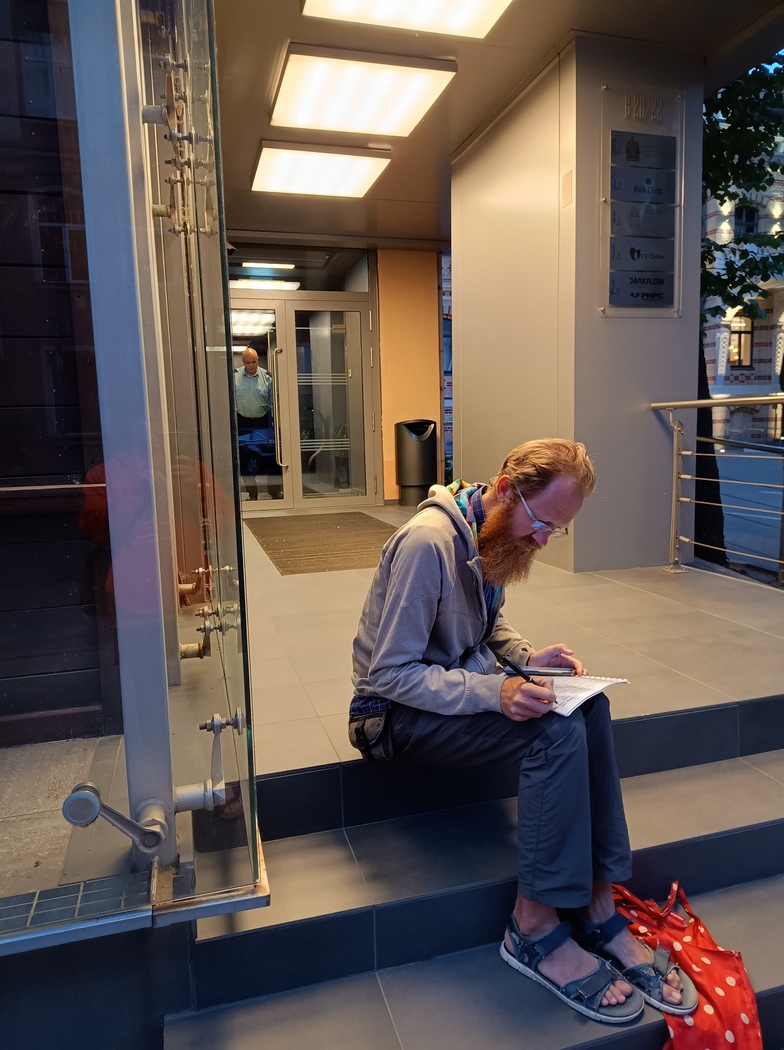Noch immer hatten wir das in Ungarisch verfasste Manuskript unserer Gastgeberin am ersten Morgen in der Slowakei (zum Artikel) bei uns, da uns keine Ungarn über den Weg laufen wollten. Daher ersonnen wir den Gedanken, das Dokument einfach in den Briefkasten der ungarischen Botschaft zu werfen. Diese hatte jedoch gar keinen Briefkasten, aber selbst um 21 Uhr saß noch ein Pförtner im Foyer des Gebäudes, wo auch die kanadische Botschaft residierte. Tilmann trat ein und erklärte er habe ein Dokument für den Briefkasten der ungarischen Botschaft. Der Wachmann war keiner Fremdsprache mächtig, dafür hatte er jedoch offenbar seine Aggressionen schlecht unter Kontrolle und begann direkt zu pöbeln. „One second“ bat Tilmann und ging noch einmal hinaus, um die Adresse der Autorin auf dem Umschlag zu notieren. In dem Moment schloss die Torwache kurzerhand die Tür von innen ab und ignorierte von da an alles was davor passierte, also Klopfen, Winken und „Fuck you!“.