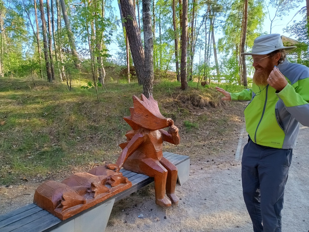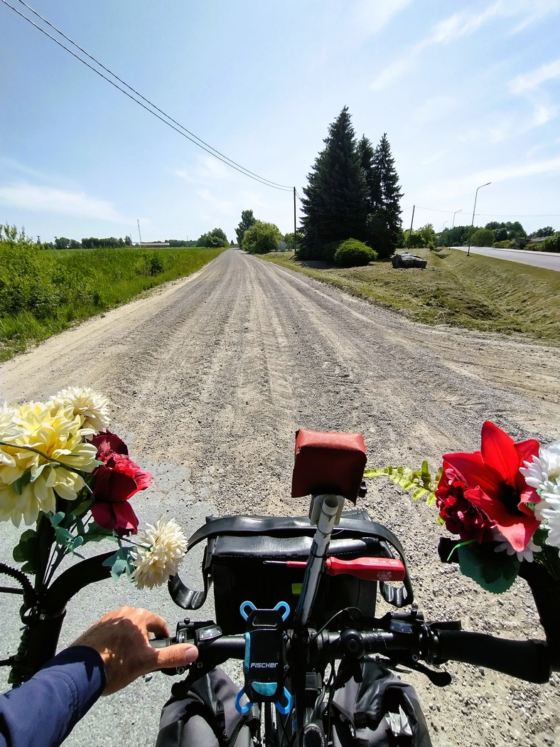 Das Zünglein an der Waage für diese Entscheidung war der EuroVelo 13 (EV13), der uns an Tag 437 so richtig zu nerven begann. Doch die Entscheidung hatte sich schon seit einigen Wochen abgezeichnet, denn es hatte sich zwischen A und B eine wachsende Leistungsdifferenz ergeben. Diese hatte dazu geführt, dass Person B schon in Rumänien, Polen und dem bisher bereisten Baltikum Schleifen gefahren war, während A den direkteren Weg wählte. Jetzt kam noch eine außerordentlich uncharmante Routenführung hinzu, die das Fass zum Überlaufen brachte. Der EV13 verlief aus Riga heraus zwar zunächst an einem gut ausgebauten Radweg, jedoch immer parallel zur Autobahn 4 bzw. E67 und mündete schließlich auf dieser. Mit nur kleinem Seitenstreifen und viel LKW-Verkehr nicht gerade das, was man sich unter einer empfehlenswerten Radroute durch Europa vorstellt. Wie zum Hohn hingen die Auszeichnungen für den EV13 auch immer nur an Abschnitten, wo man kurz die Autobahn verlassen konnte und es etwas schöner war, sich der Umweg, der mit ein paar zusätzlichen Kilometern verbunden war, aber kaum lohnte. Ansonsten war auch die Beschilderung äußerst lückenhaft, vielleicht weil man sich selbst für diesen Radweg schämte. Die Umfahrungen der Autobahn führten dann auch gerne Mal über einen Sandweg, der laut anderer Beschilderung auch gar nicht befahren werden durfte oder führte über ein Gleisbett, was Absteigen und Schieben erforderte. Man schwankte immer zwischen Pest und Cholera. Wir trauen uns auch gar nicht mehr, in jedem Beitrag über den Gegenwind zu jammern, aber ja, er war auch wieder mit von der Partie.