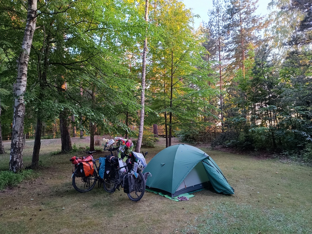 Obwohl der Zeltplatz mitten im Wald mitten im Nirgendwo zu liegen schien, fand nicht weit entfernt ein Treffen ohrenscheinlich junger Leute statt, die nervigen baltischen Schlager-Techno hörten. Glücklicherweise schirmte der Windschutz in der B das Zelt aufgebaut hatte aber den Lärm intensiv genug ab, sodass mit Schlafbrille einigermaßen Schlaf zu finden war.