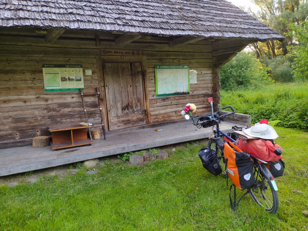 Langsam wurde es Zeit, sich um einen Schlafplatz zu bemühen, auch wenn es inzwischen natürlich noch ewig hell blieb. Eine kurze Internetrecherche zur Frage Wildzelten in Estland brachte dann die grandiose Erkenntnis, dass die Forstbehörde RMK überall im Land kostenlose Campingplätze zur Verfügung stellte und der nächste war auch nicht mehr weit! Leider las er bei dieser Gelegenheit auch die Nachricht eines estnischen warmshowers-host (der uns eine Absage erteilt hatte) das seit heute! wegen Waldbrandgefahr im ganzen Land ein absolutes Feuerverbot gelte.