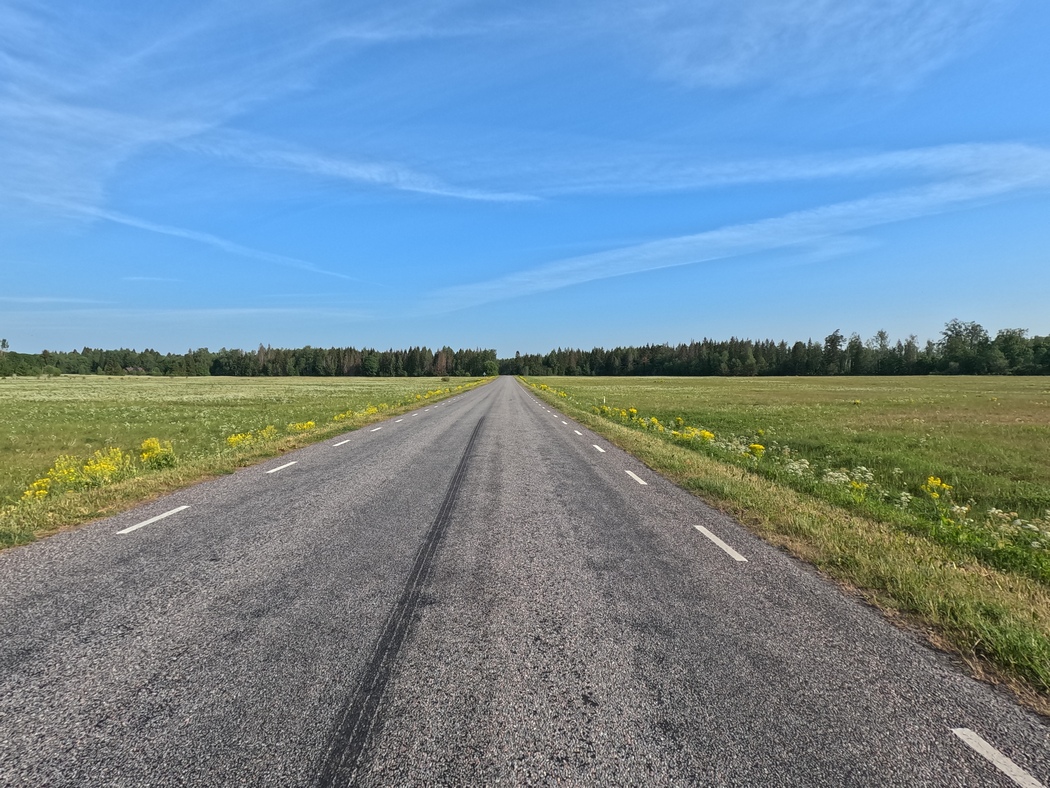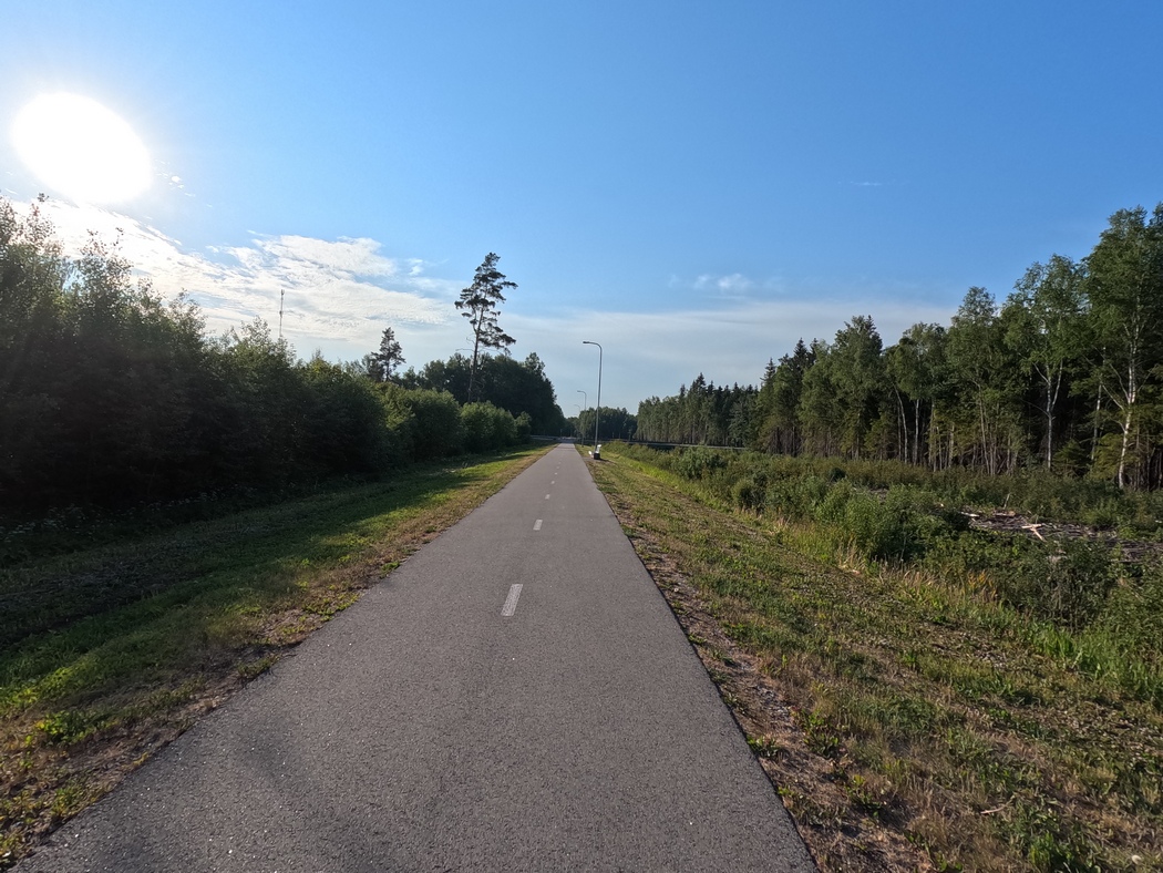 Der Kontrast hätte nicht stärker ausfallen können. Von jetzt auf gleich herrschte absolute Ruhe, denn der Radweg verlief nun für eine ganze Weile auf dem in Estland vollkommen intakten alten Verlauf der Riga-Tallinn-Autobahn. Sanft glitten die Räder auf dem Asphalt durch den Kiefernwald, dass sich einem das Herz nur so weitete.