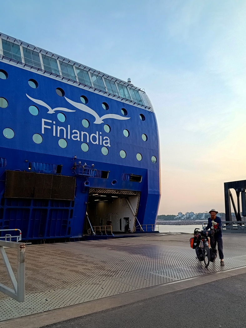Gegen Abend bestiegen nun wiedervereint Julia und Tilmann die Fähre nach Helsinki, einige andere Radreisende hatten sich dort ebenfalls eingefunden, die sich jedoch zu cool fanden, sich mit uns auszutauschen und schnell verschwanden, nachdem wir bemängelt hatten, dass sie ihre Räder etwas ungünstig abgestellt hatten und ein Umbau erforderlich war, damit auch wir dort unsere Räder unterbringen konnten.