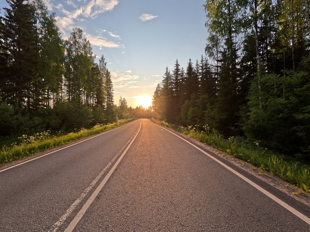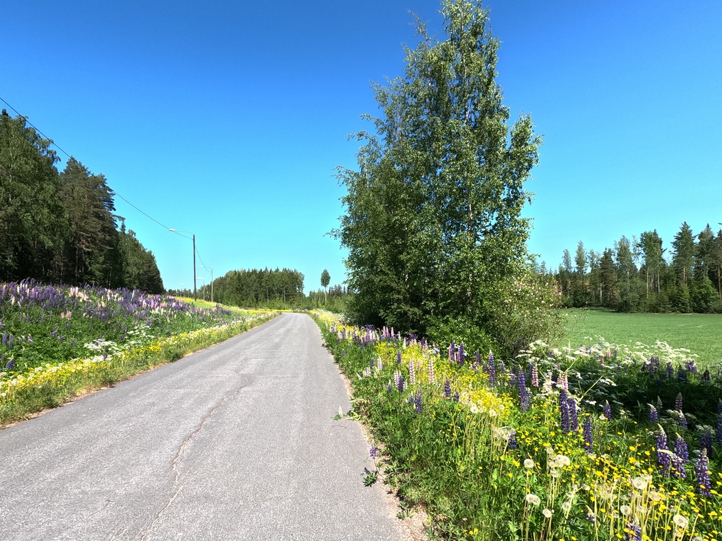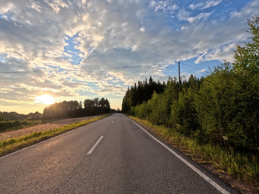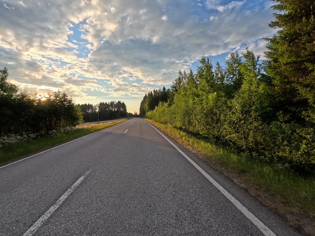 Mehrere Stunden war Tilmann vollkommen alleine auf der Straße. Erstaunlich war dennoch die hohe Anzahl an Häusern und Hütten, wo doch ganz Finnland weniger Einwohner hat als Berlin und Hamburg zusammen. Die Erklärung ist wohl, dass jede*r Finne*in, die*r es sich leisten kann, eine Sommerhütte, auf Finnisch Mökki, besitzt. So kommt vielleicht auf jede*n Einwohner*in eine bewohnbare Baustruktur.